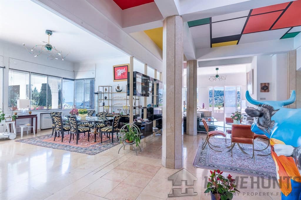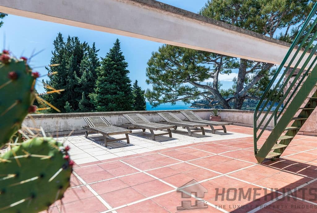 This spacious villa offers a living area of 594.55 m2 and is nestled in the heart of 4000 m2 of gardens, with three superb terraces offering panoramic views of the sea.