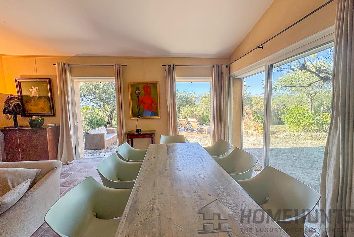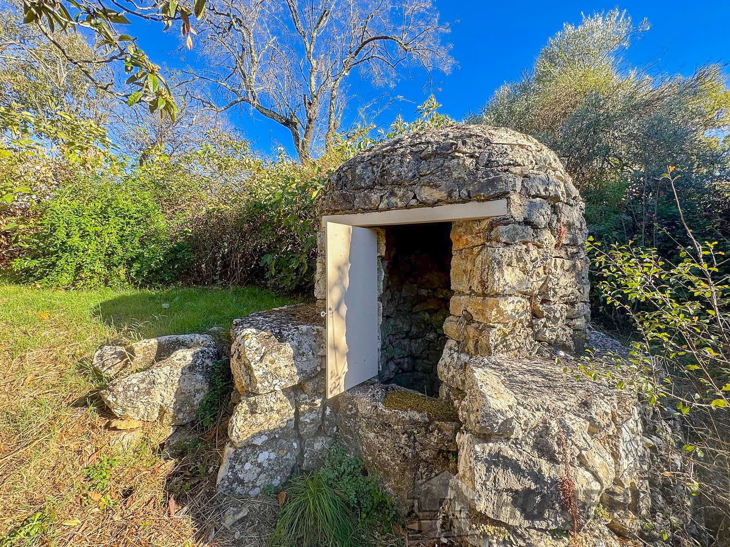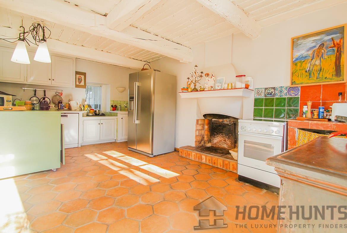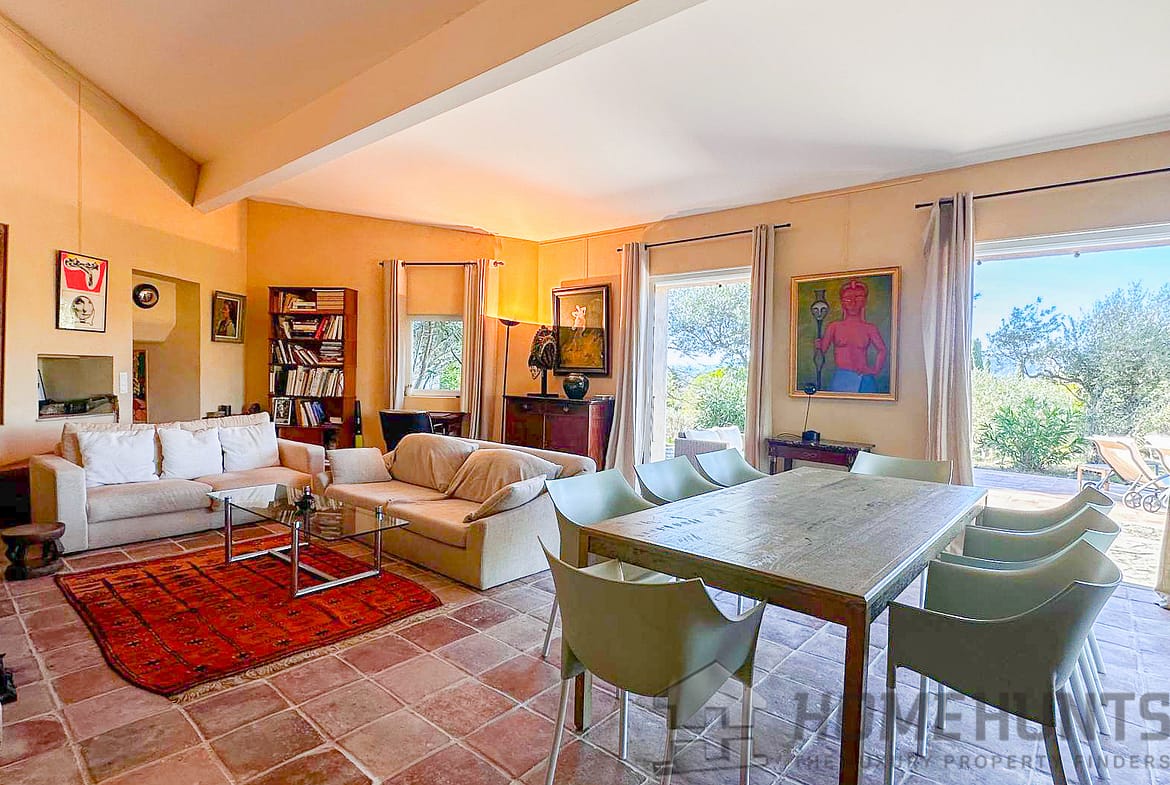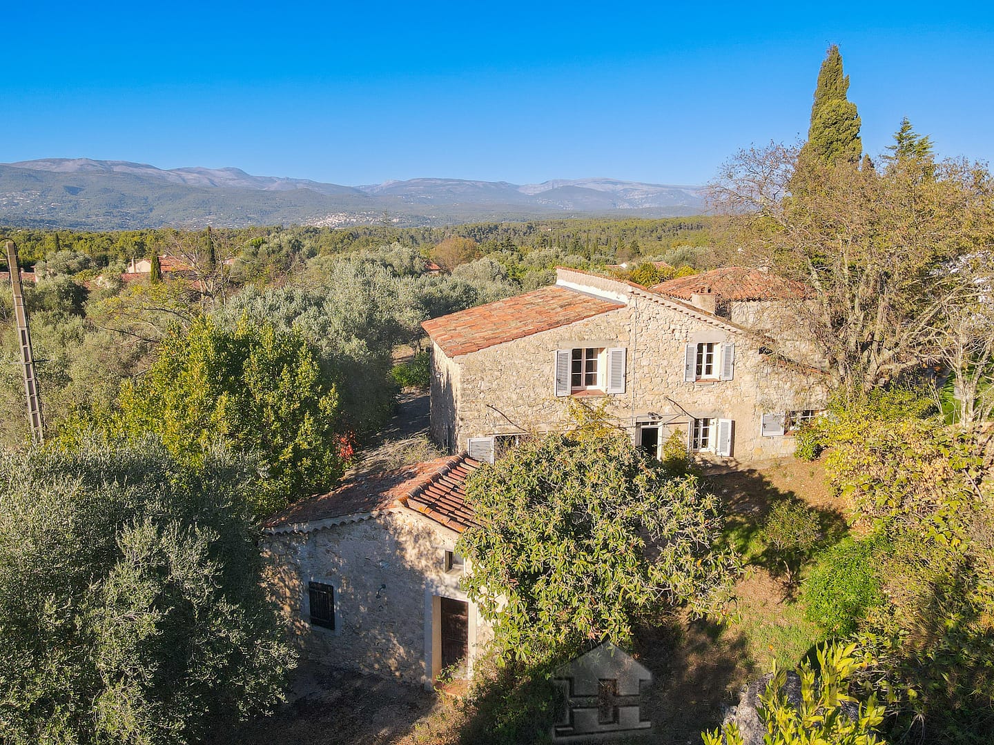 Situated in a lush green setting, just 400 metres from the village, this former stone bergerie stands on over one hectare of flat land, offering beautiful views over the surrounding hills and a garden planted with olive trees, pink oleanders and cypress trees.