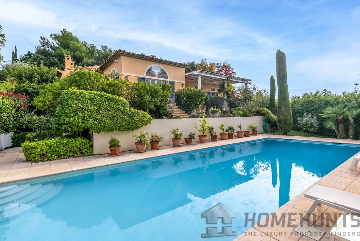 A true gem, this charming Mediterranean-style villa features a heated swimming pool at the heart of a beautifully terraced plot of land spanning nearly 7,500 m2, offering breathtaking views of the Mediterranean sea and the hills.