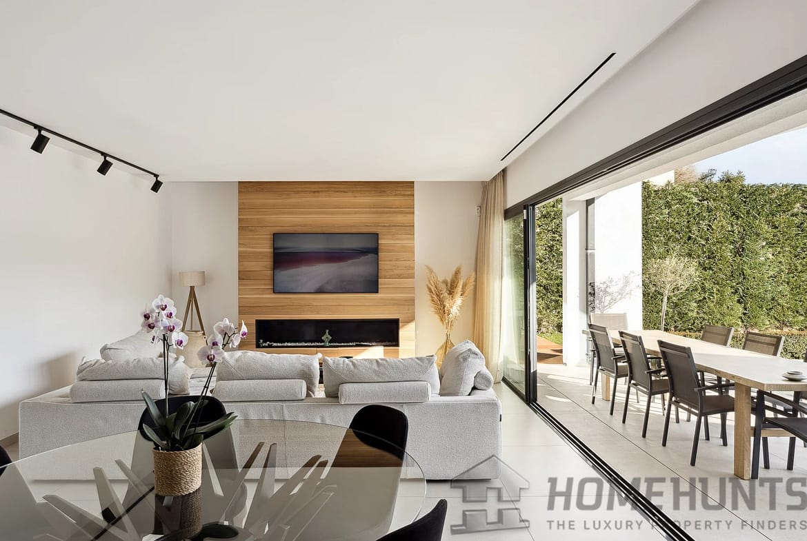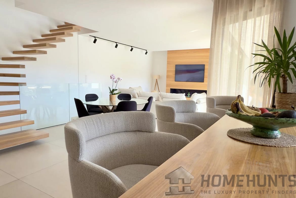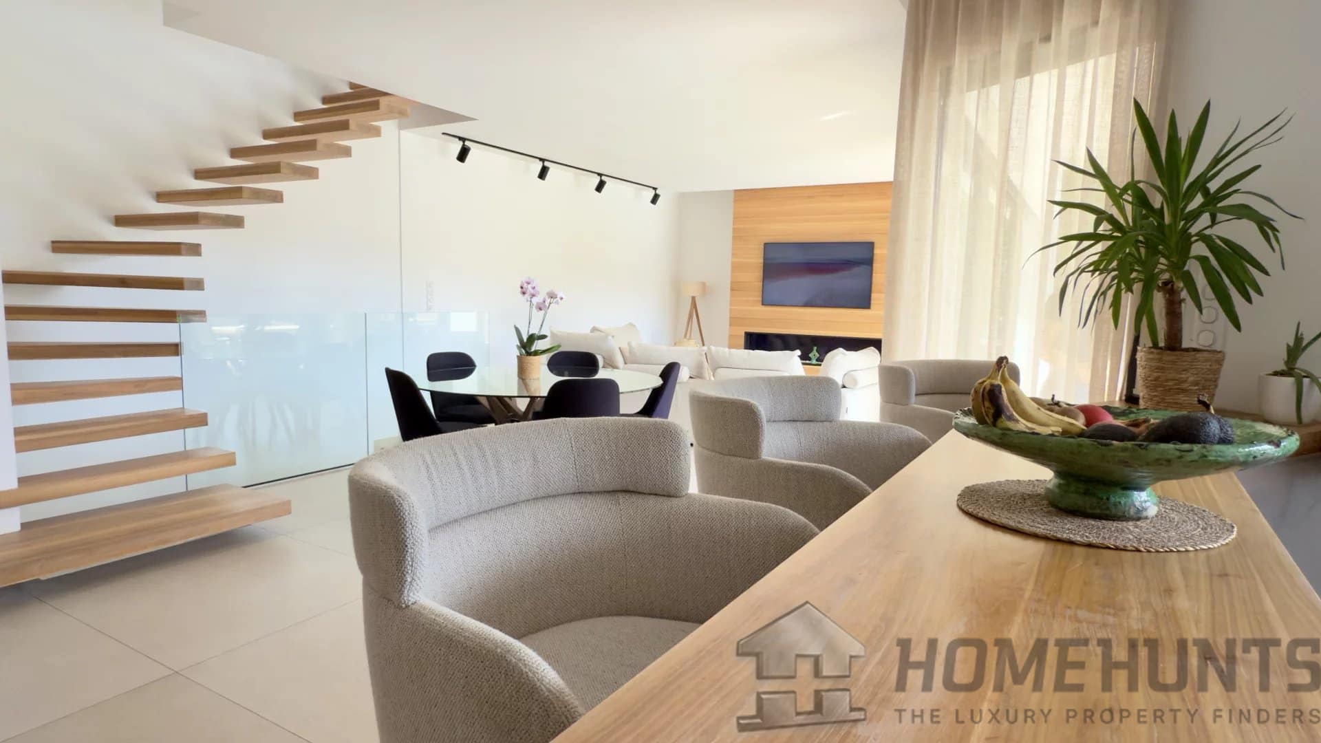 With its clean architectural lines and open-plan layout, the home invites a sense of effortless flow between indoors and outdoors. Large glass openings flood the interior with sunlight, creating a soothing ambiance throughout.