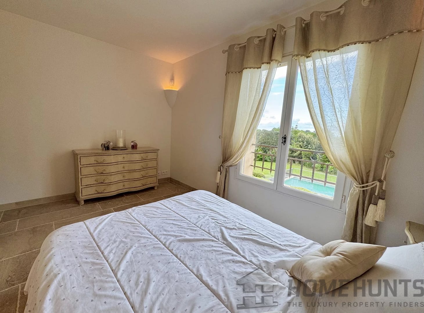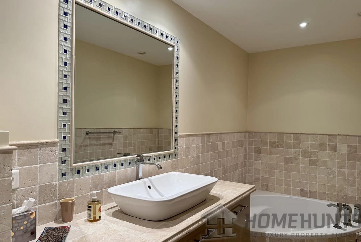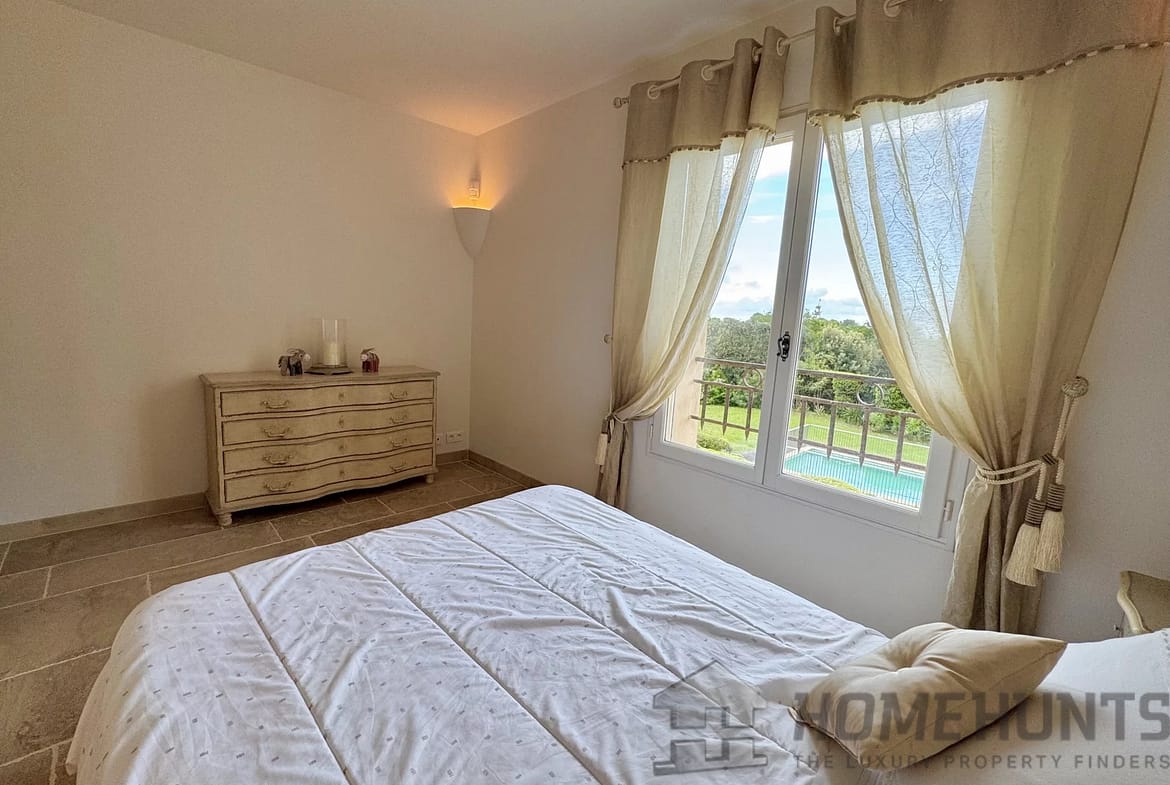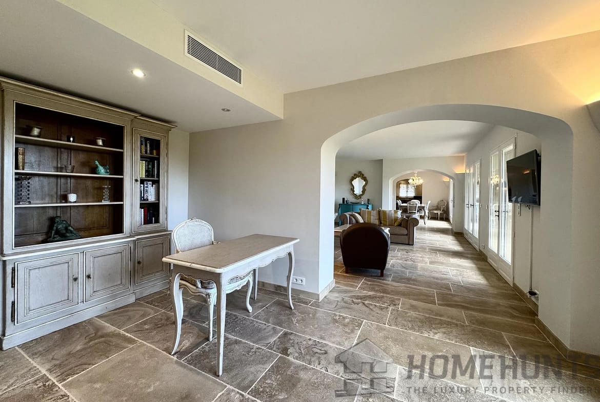 This level also offers a study, followed by a generous en-suite bedroom with its bathroom and toilet, opening directly onto the garden and the pool.