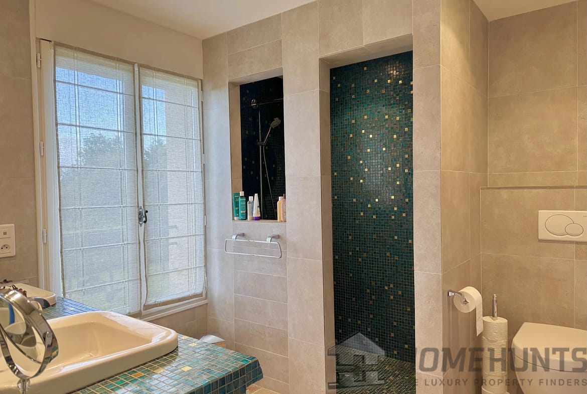 Set within a beautifully landscaped 2,500 m2 garden offering absolute tranquility, this elegant and impeccably maintained property of approximately 230 m2, featuring 5 bedrooms, captivates with its warm atmosphere and high-end amenities.