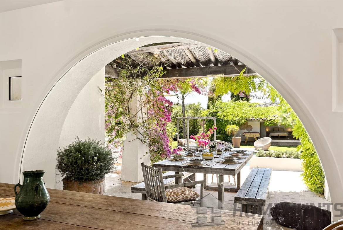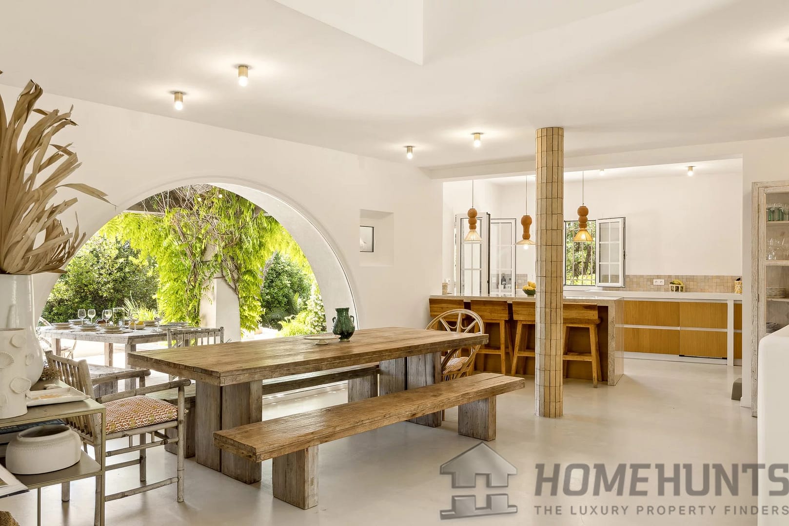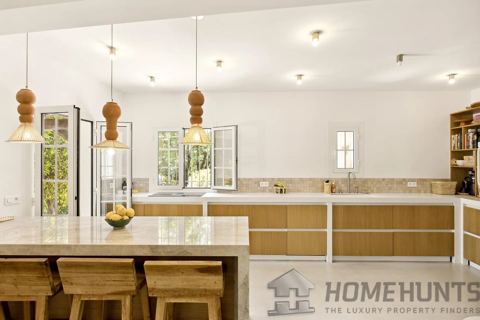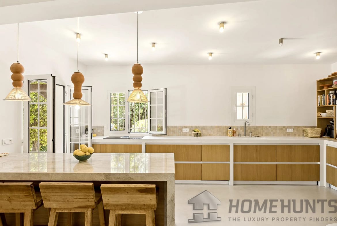 Upstairs, an en-suite bedroom opens onto a generous terrace with open views of the surrounding greenery.