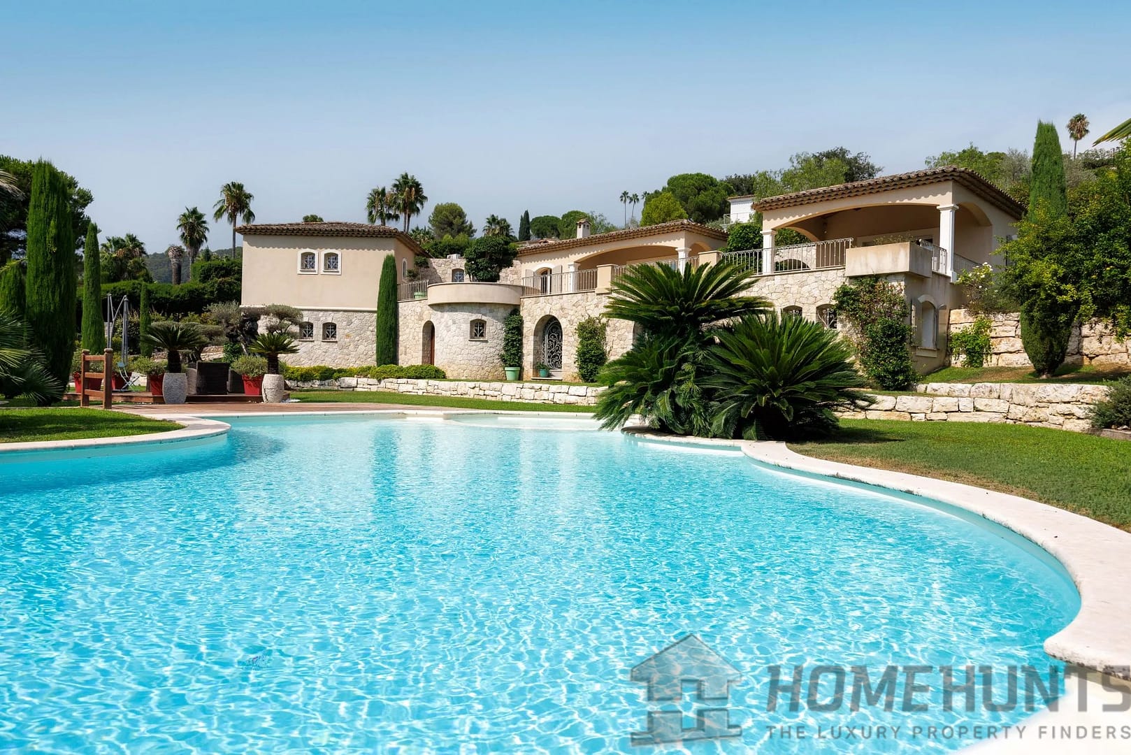 Located just a stone’s throw from the village of Saint-Paul de Vence, this opulent property (approx. 285 m2 + 7-car garage) benefits from a quiet, residential setting and a 2,600 m2 landscaped garden with heated infinity pool.