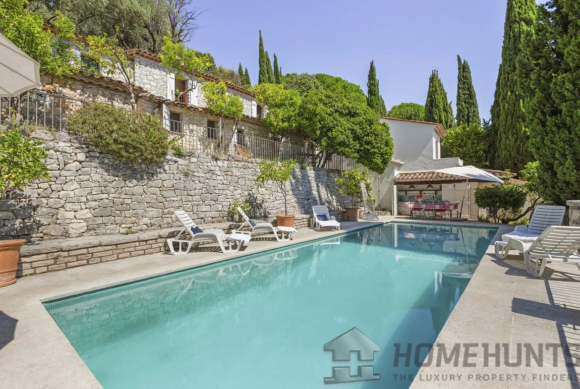The entire property essence of Mediterranean living, with landscaped terraced gardens, swimming pools, and a wide variety of trees and plants- all framed by remarkable views of the medieval ramparts of Saint-Paul-de-Vence and stretching across the French Riviera.