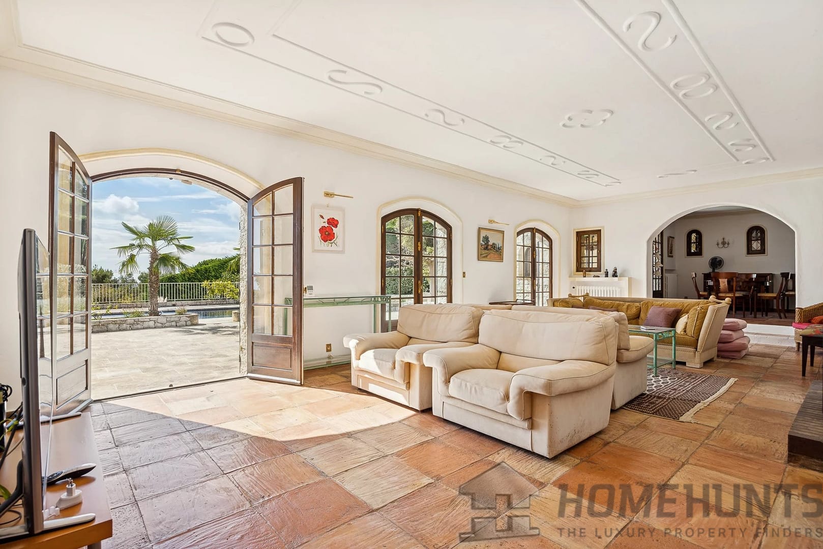The property also offers a double garage and a magnificent swimming pool with panoramic views over the sea and surrounding hills.