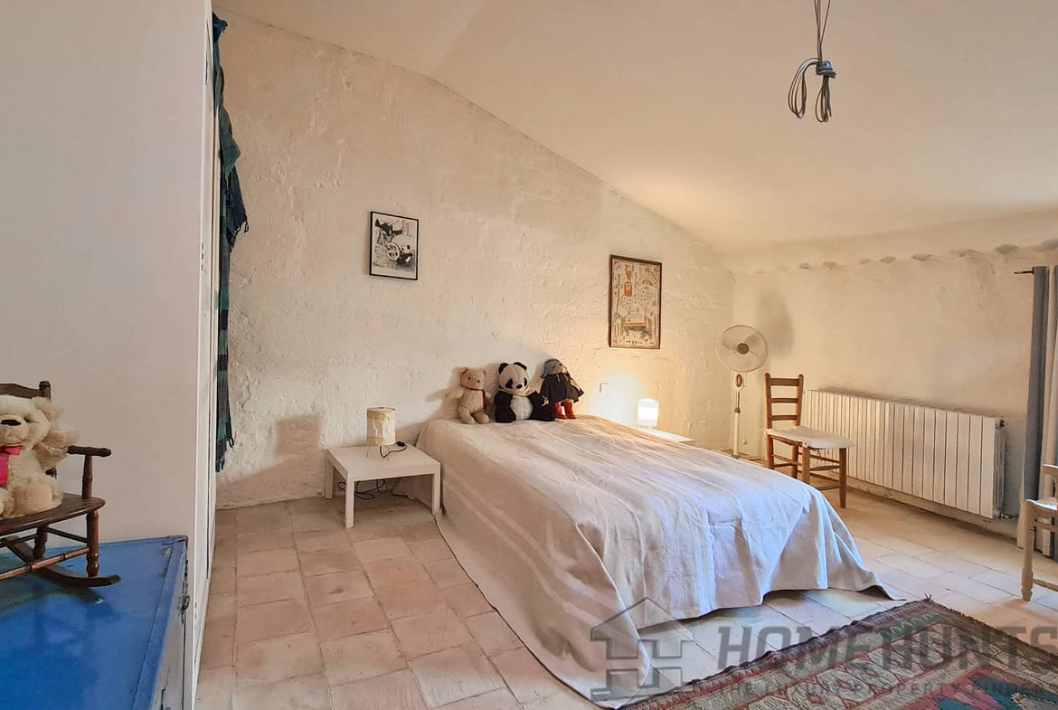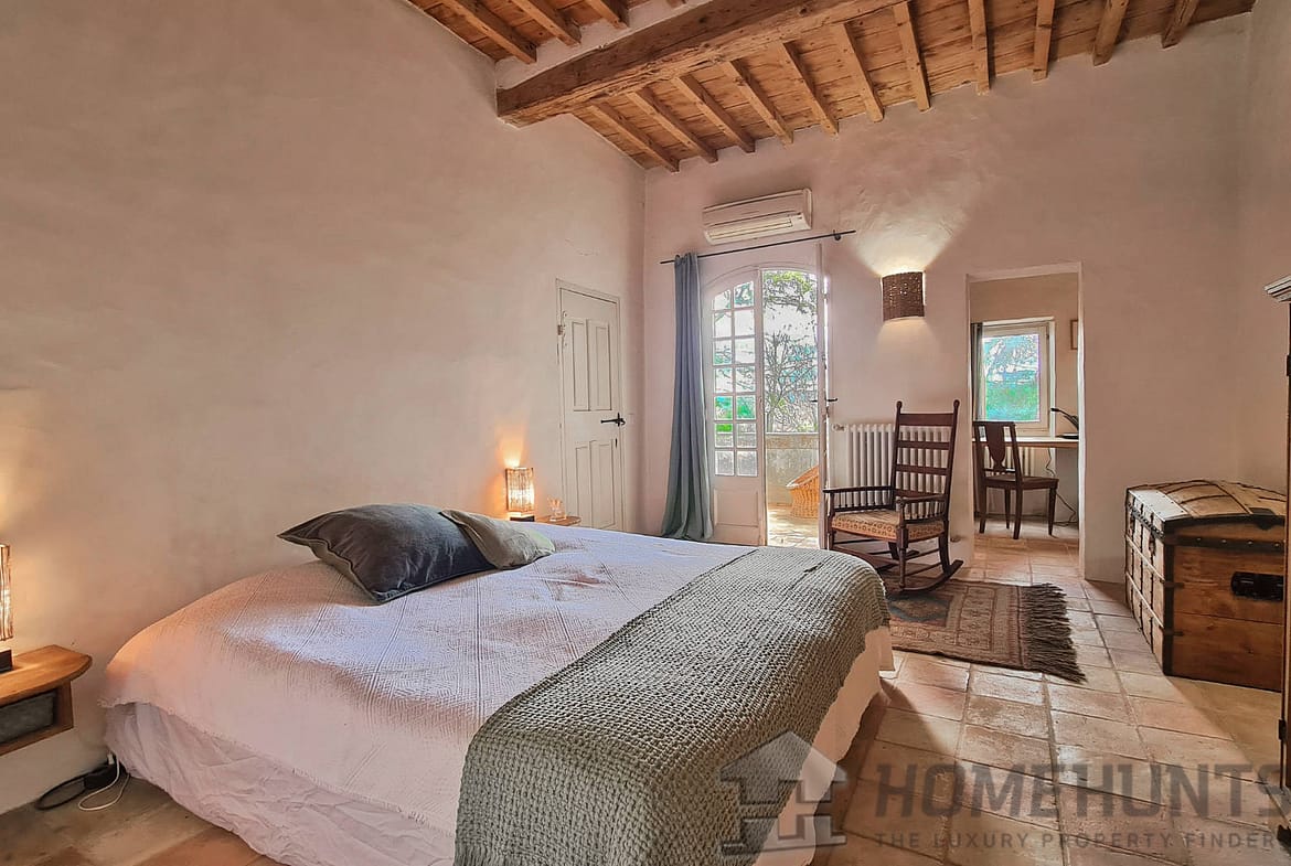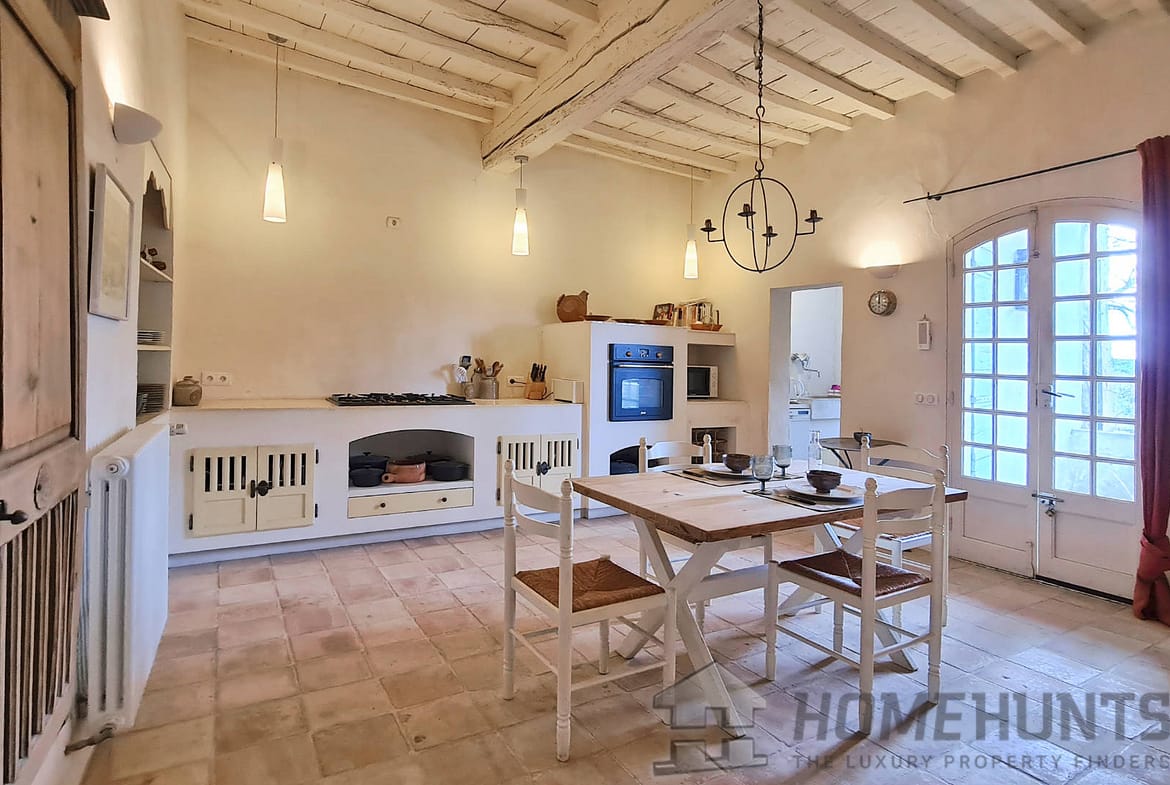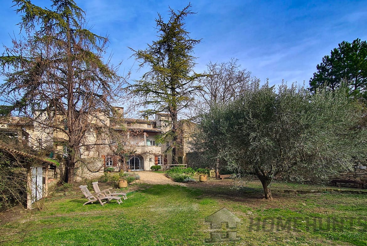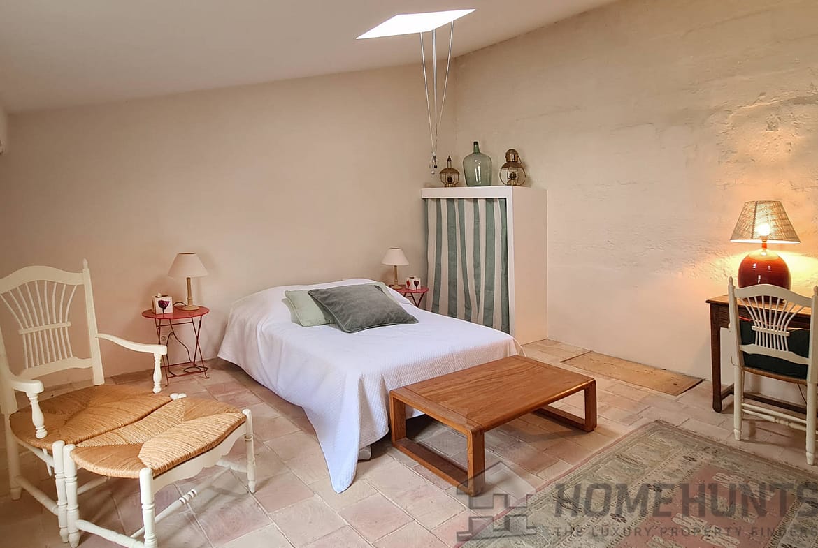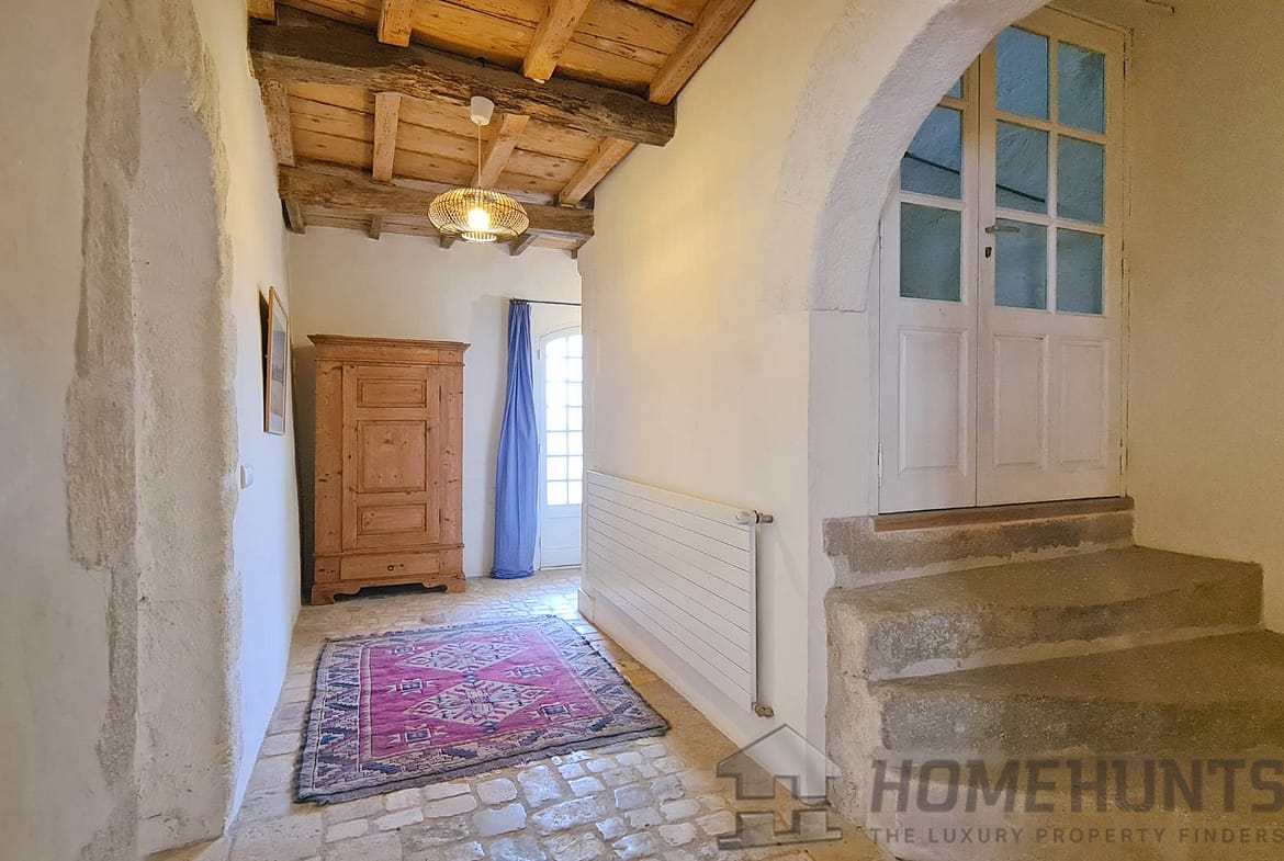Offering nearly 330 m2 of living space, the house includes on the ground floor a large entrance hall leading to a superb dining room, a summer kitchen and a first vaulted living room. On this floor there is also access to the cellar, a laundry room, the boiler room for the city gas central heating and a guest toilet. Magnified by its large terrace with colonnades, the first floor was chosen as the main living level: an spacious living room with French ceiling and tall windows also features terracotta floors; the kitchen-diner opens onto the terrace and is extended by the “patouille” housed in the old tower of the property. On this level, we also find the master bedroom with direct access by elevator. Opening onto the terrace, it also benefits from a small alcove in the second tower of the property. This suite is completed by a dressing room opening onto an elegant full bathroom with 2 stone basins, bathtub and spacious shower. Guest toilet.
