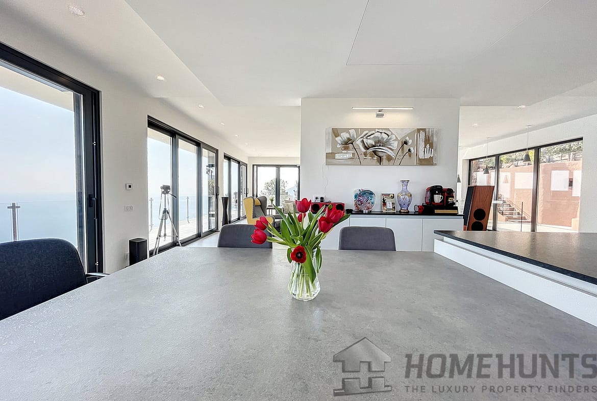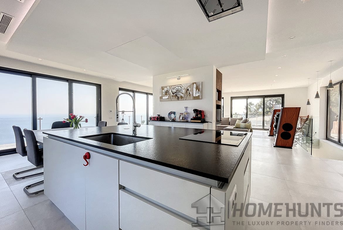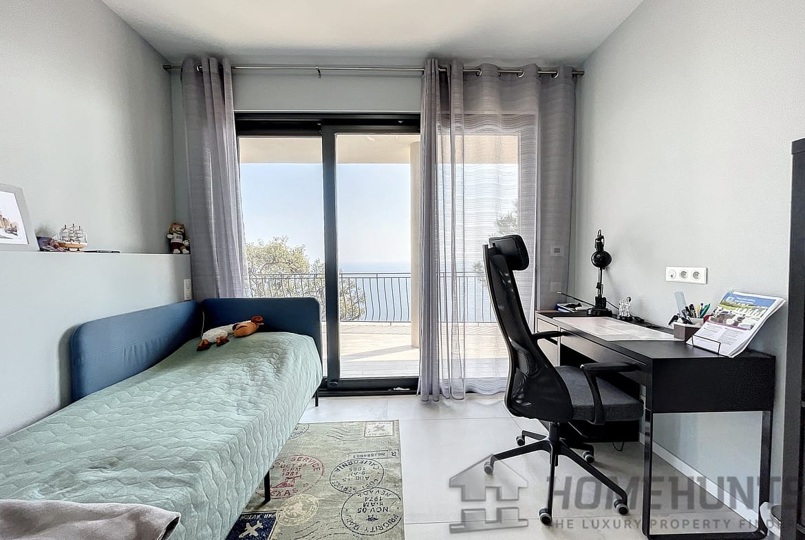 Built on 2 levels, the villa is composed on ground floor of a large living room with chimney, and an open plan and all equipped kitchen with a dining area and cellar, all opening onto a large terrace offering an amazing sea view.