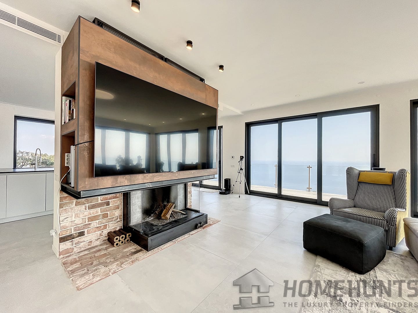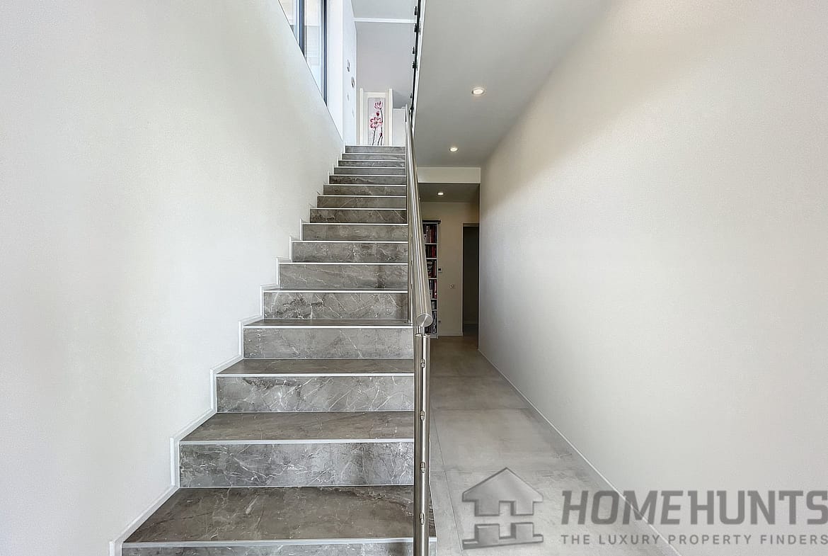 Built on a 1173 m2 plot, the property also comprises an independent studio and enclosed parking area.