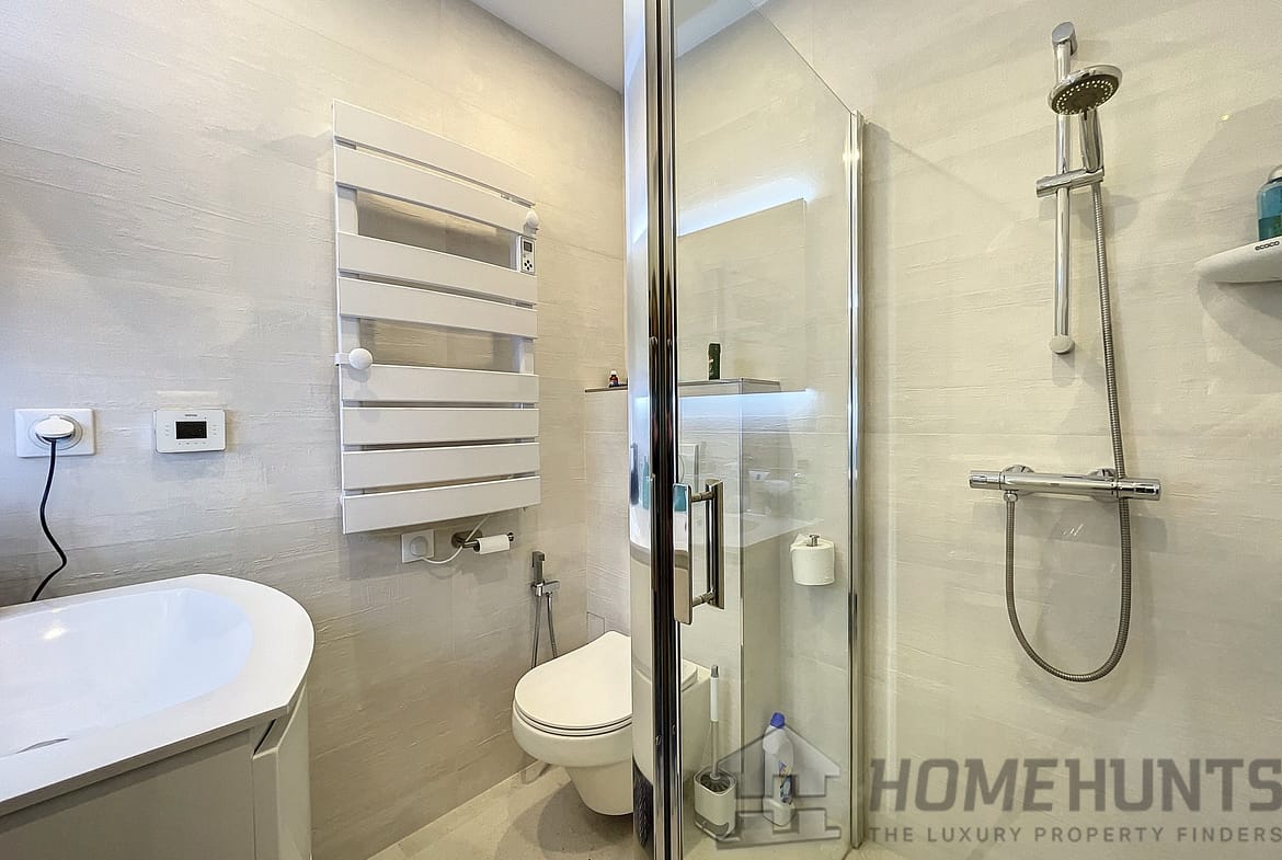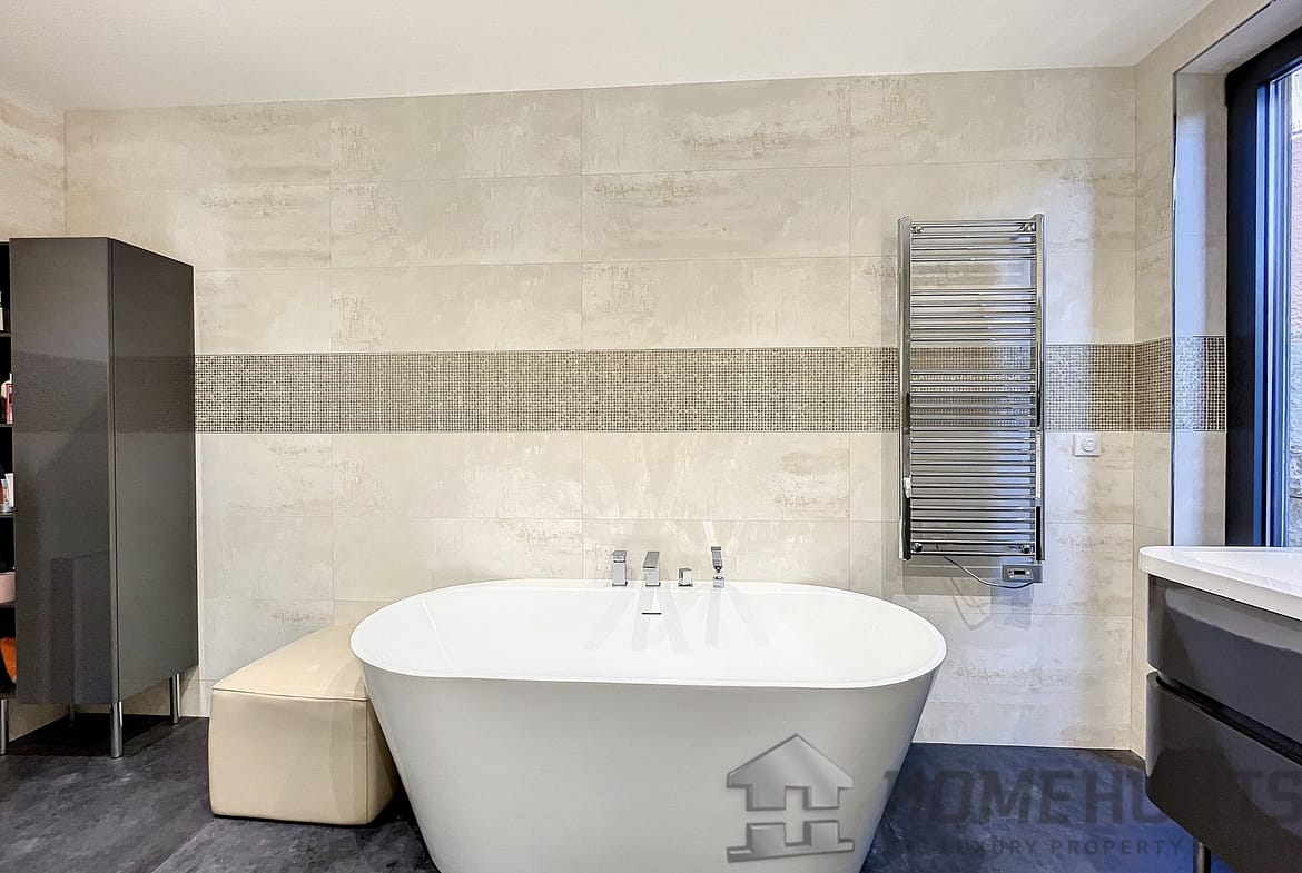 The garden floor comprises 3 en-suite bedrooms with their own shower room, within a master bedrooms with bath and dressing. All the bedrooms open onto terraces leading to the pool area. The floor comprises as well an independent toilet, a wine cellar and a laundry room.