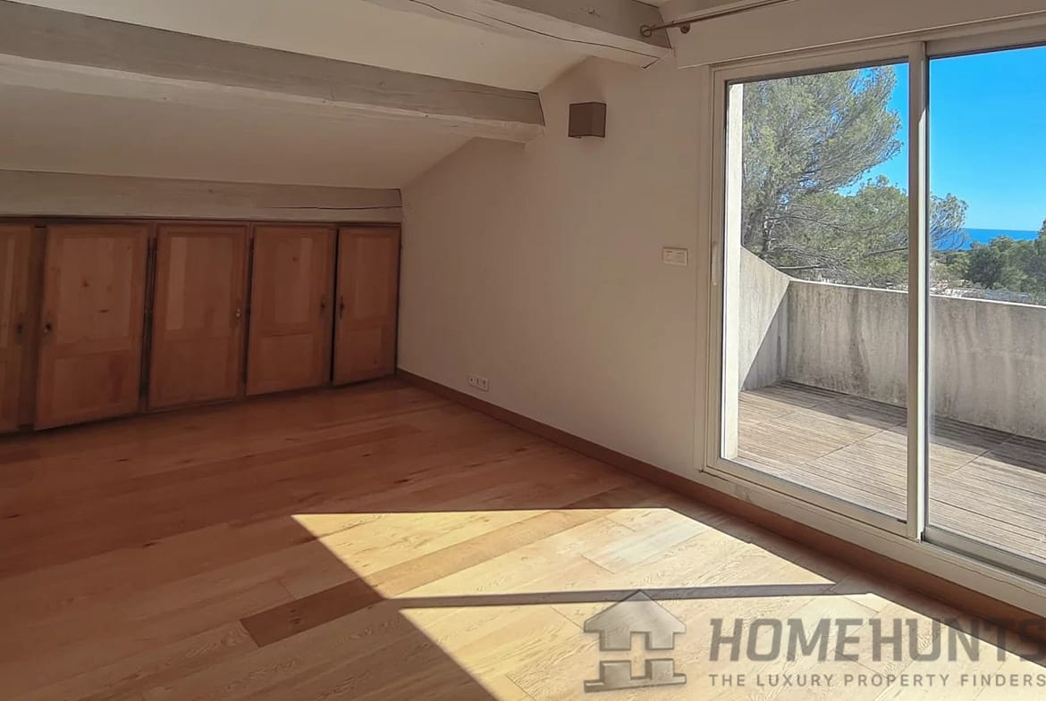 More than 300 m2 of large volumes of contemporary inspiration, with warm decoration, offering: a double living room of 90 m2 extended by a semi-separate kitchen and opening onto a terrace of 30 m2, 2 bedrooms, office, bathroom and bathroom. On floor 2, master suite with private terrace and sea view. On the ground floor, living room, 2 bedrooms, small kitchen, bathroom, toilet (separate apartment possible), 2 large garages of 39 and 35 m2.