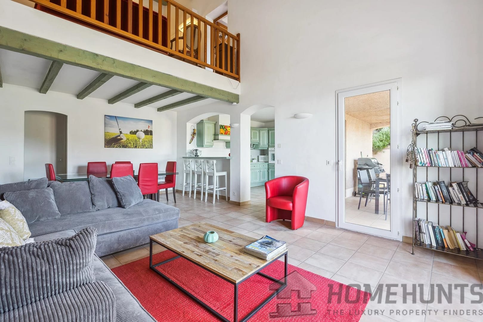 The first part of the villa includes a vast living/dining room opening onto a terrace, an equipped kitchen, a laundry room, 4 bedrooms including 2 master suites.