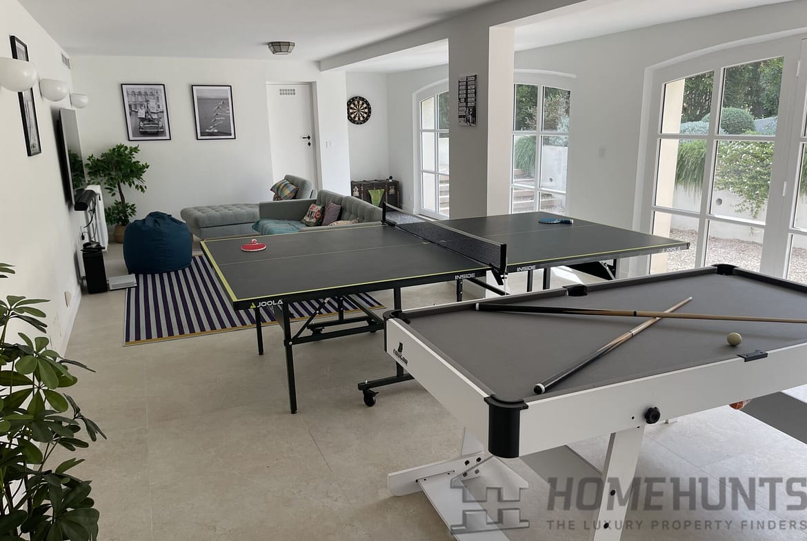 On the garden level, there is a second living room / games room which is perfect for entertaining, this also opens to its own private terrace and BBQ area. Also on this level is a kitchenette, a TV snug and beautifully appointed climate controlled wine cellar.