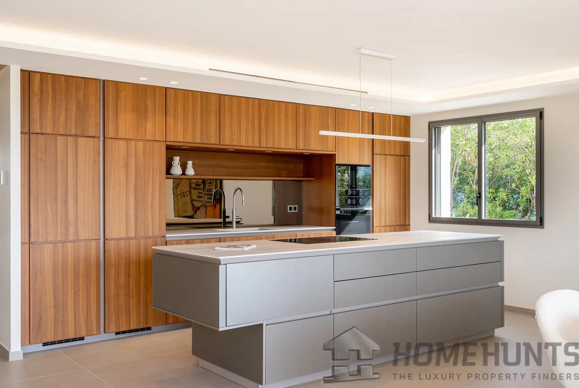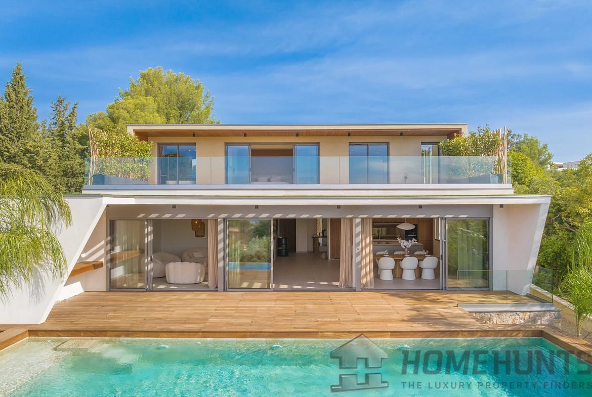 The fully landscaped plot of over 1,300 m2 is a green oasis with a double garage and a saltwater infinity pool.