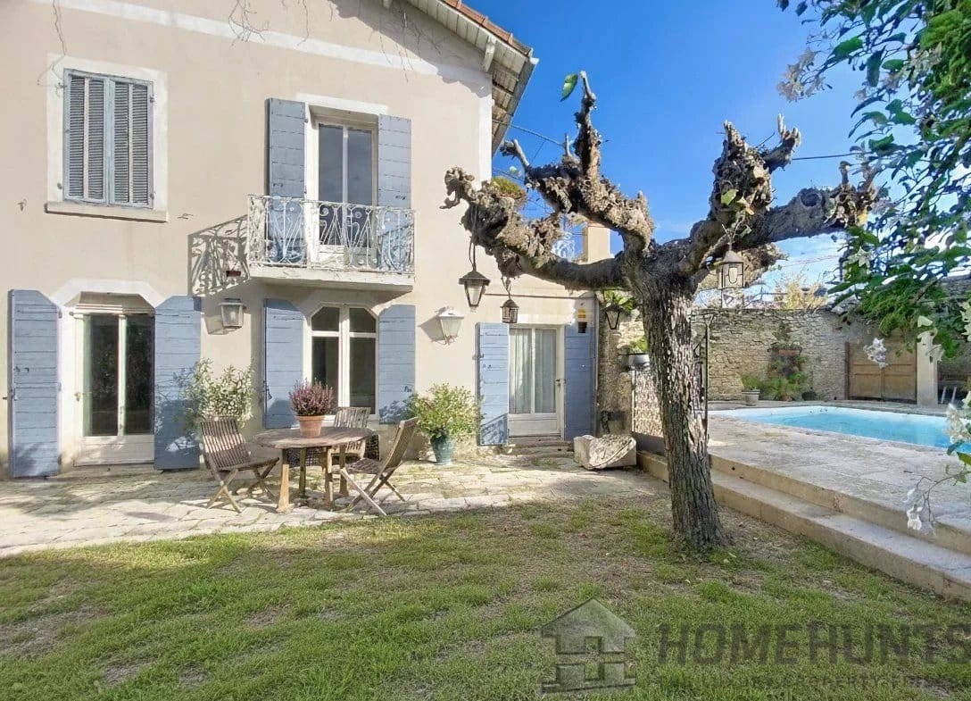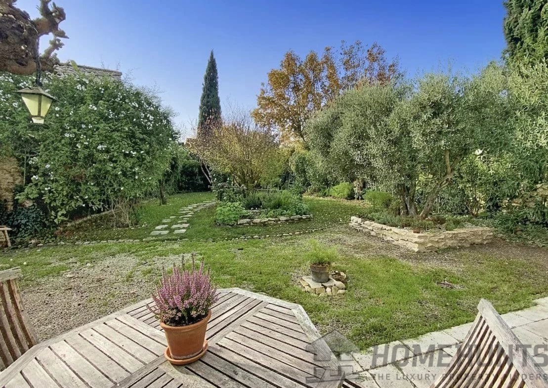 The garden features a beautiful swimming pool and shaded corners, offering a lively yet intimate outdoor space, completely private in the heart of the village.