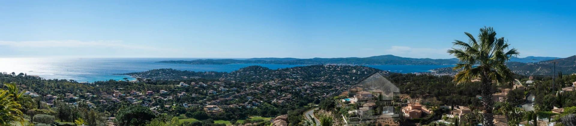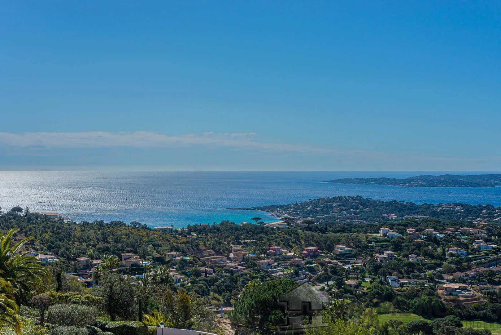 The villa (1993) is very neat and offers pleasant living spaces with all comforts (eg. interior and exterior alarm, electric shutters and gates, reversible air conditioning in each bedroom, gas heating, etc.). The villa is located in a prestigious secure domain of the Sainte-Maxime golf course, enjoying a panoramic sea view.