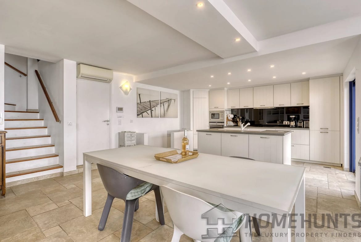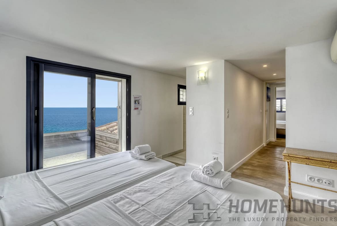The villa, with modern and chic interiors consists of a large living room entirely open to the outside, allowing you to fully enjoy the sea view. The living room has a fireplace, adding a warm atmosphere, and the kitchen is fully equipped and opened. Four bedrooms complete the interiors.