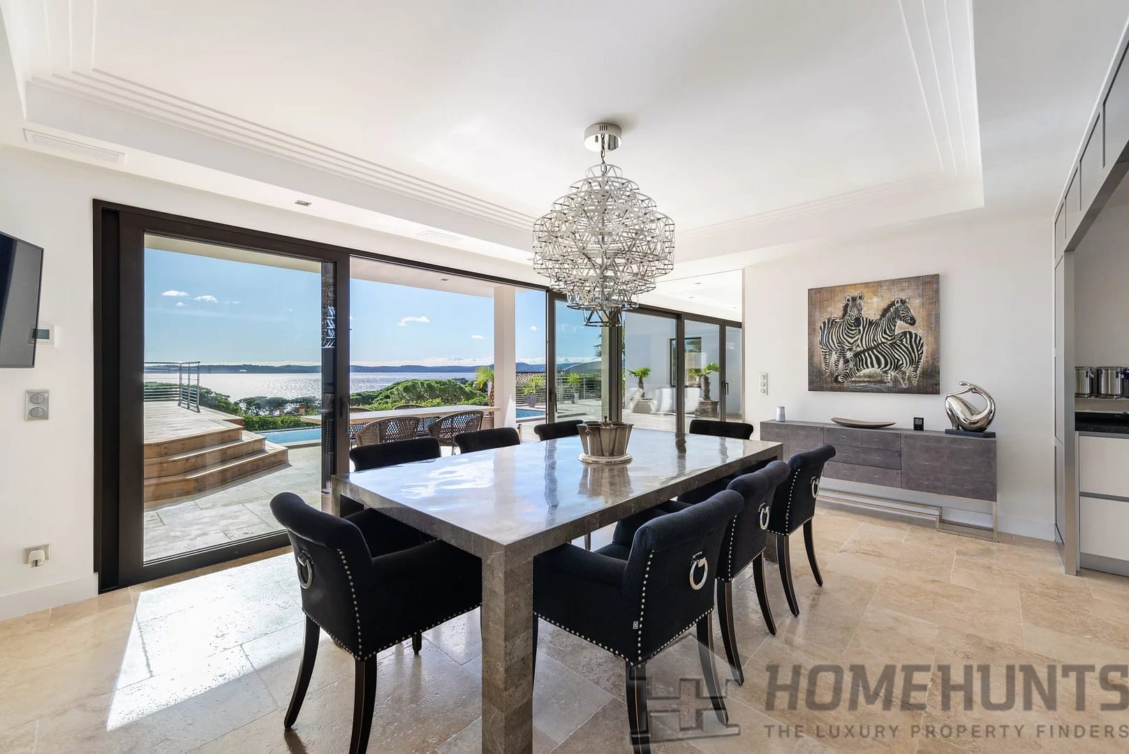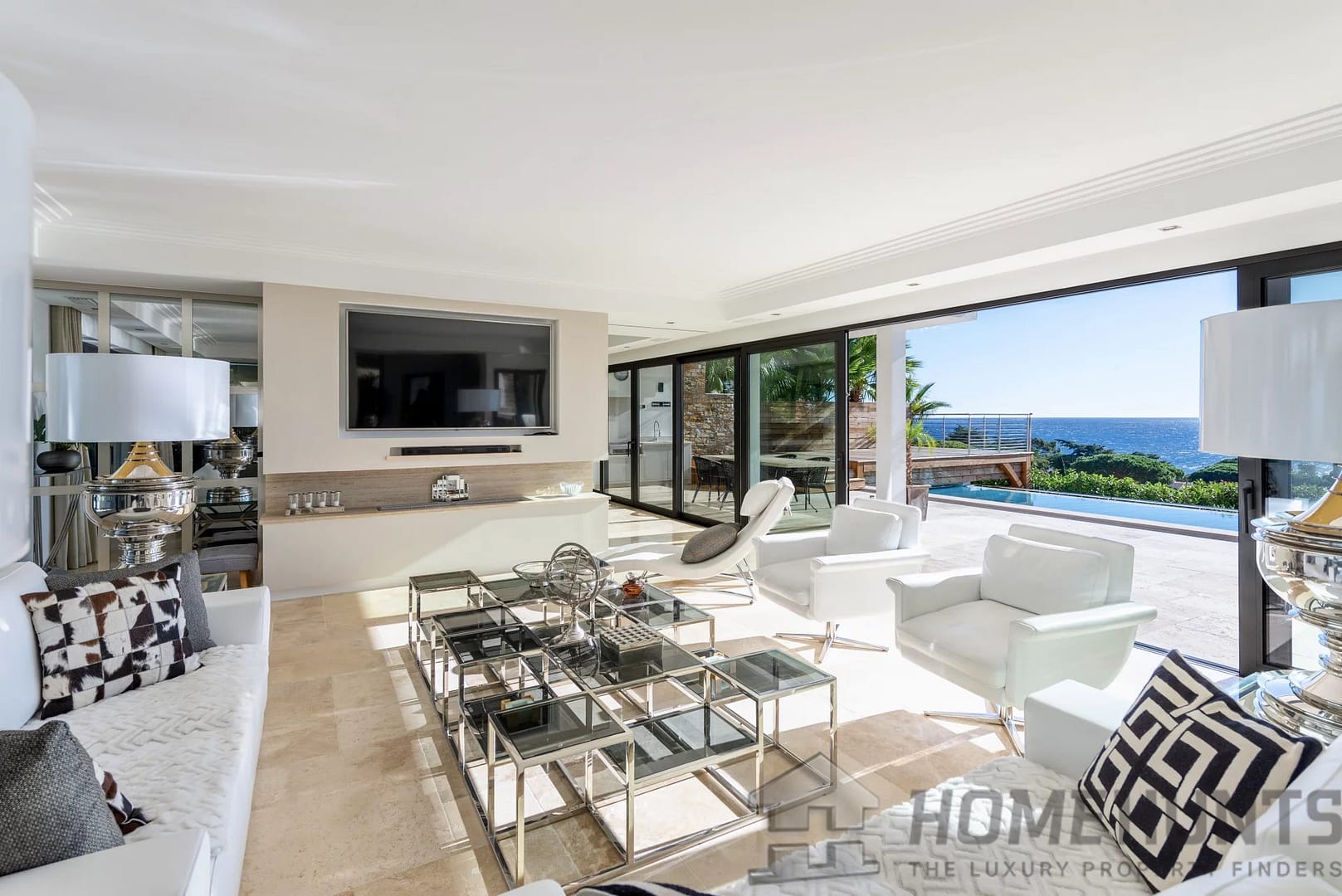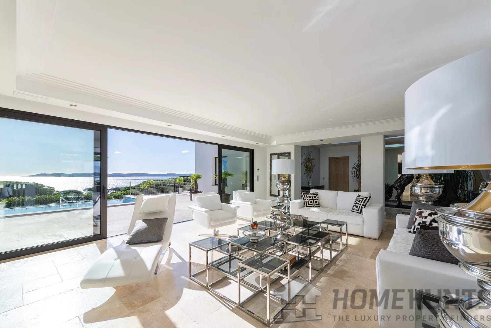 Vast sea-view reception area (120 m2), opening onto large terraces and a refined patio.
