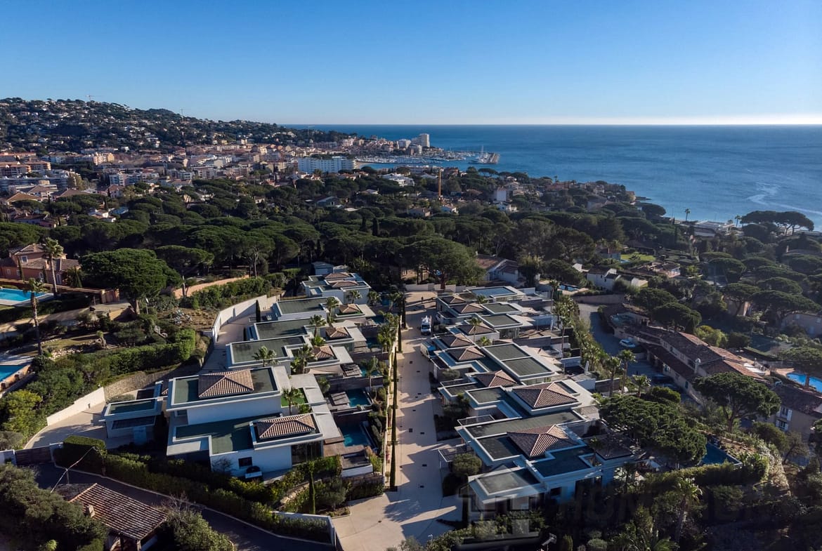Each modern villa enjoys a splendid view of the sea, Saint-Tropez and its Gulf. Rare for sale, the estate is ideally located just 300 meters from the beach and not far from the city center and the Port of Sainte-Maxime in the heart of a privileged and nuisance-free environment.