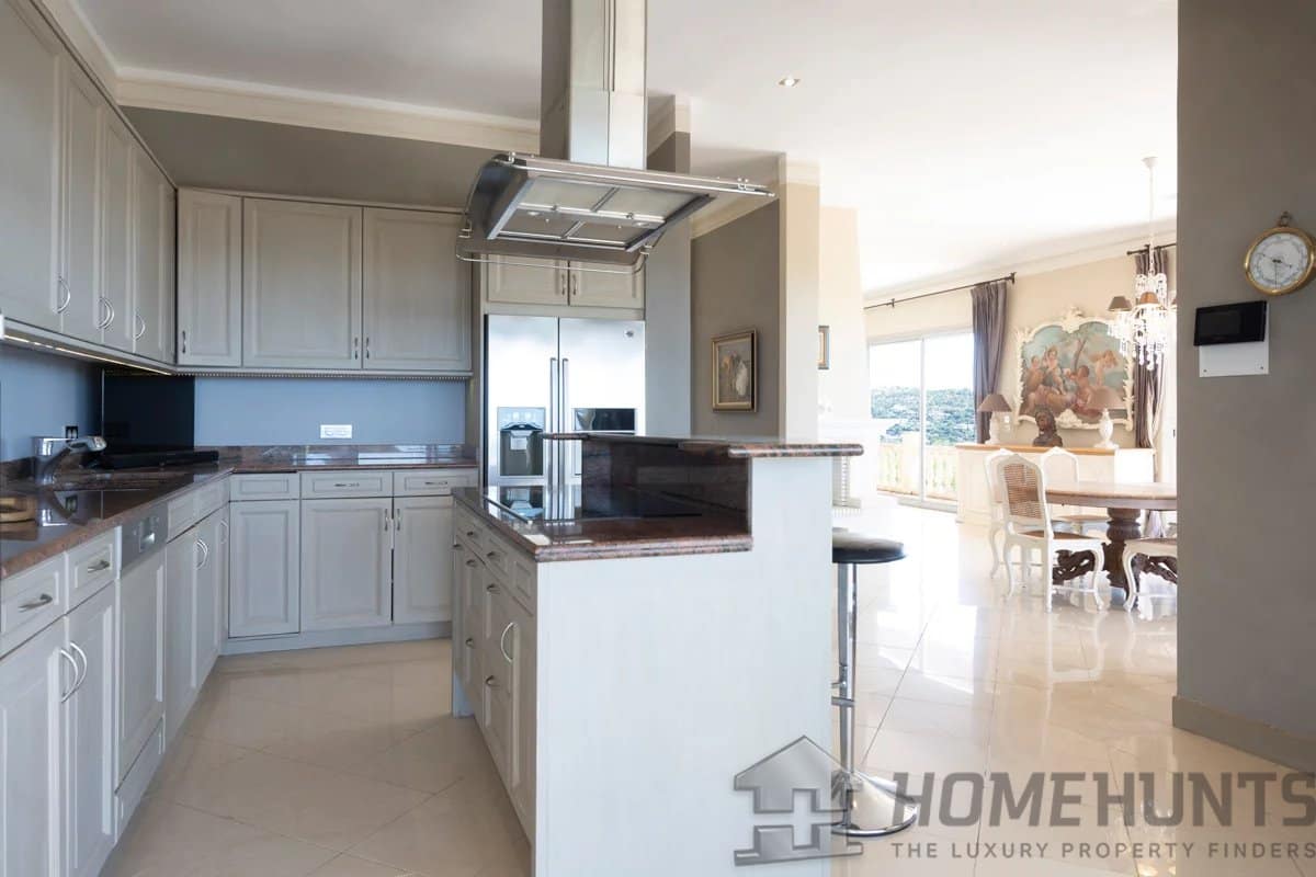 The lower level is accessed via the terrace and an elegant staircase. Here you’ll find a multifunctional games room with sauna, ideal for a gym, cinema or billiards room. This level also houses a gardener’s bedroom with en-suite shower room. There’s also a spacious apartment with private terrace, living room with open kitchen, three bedrooms and bathroom.