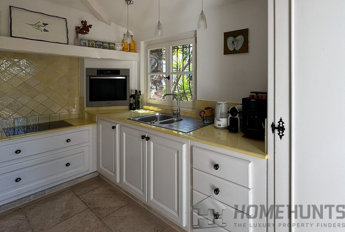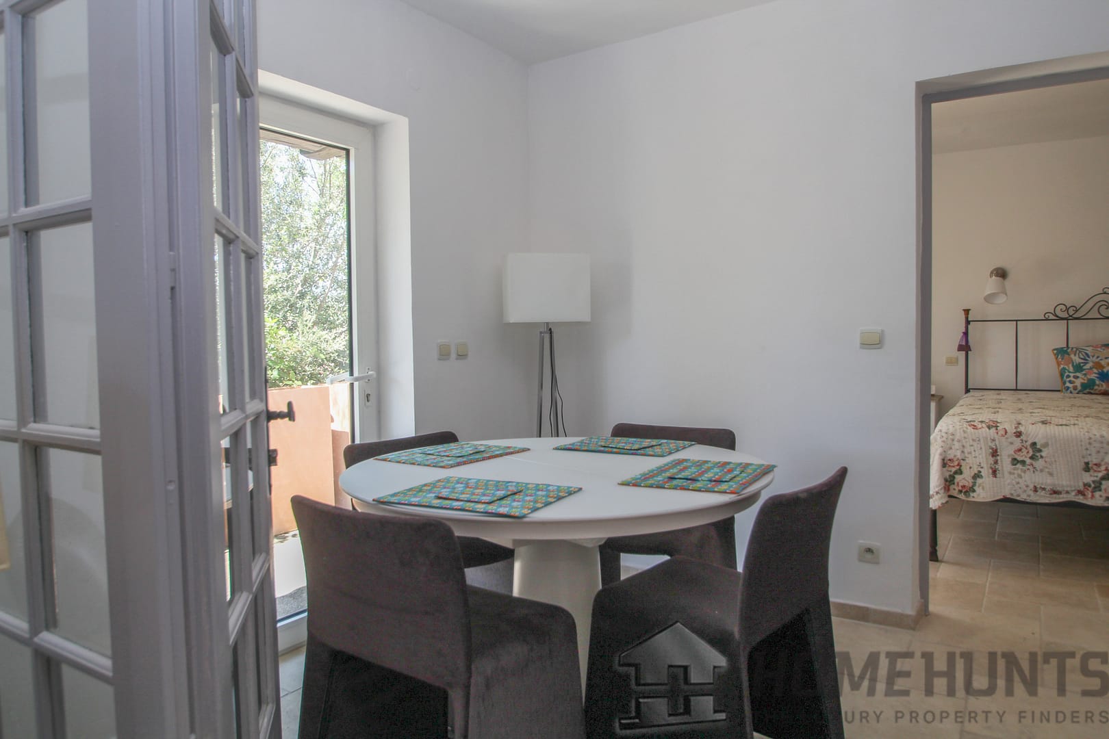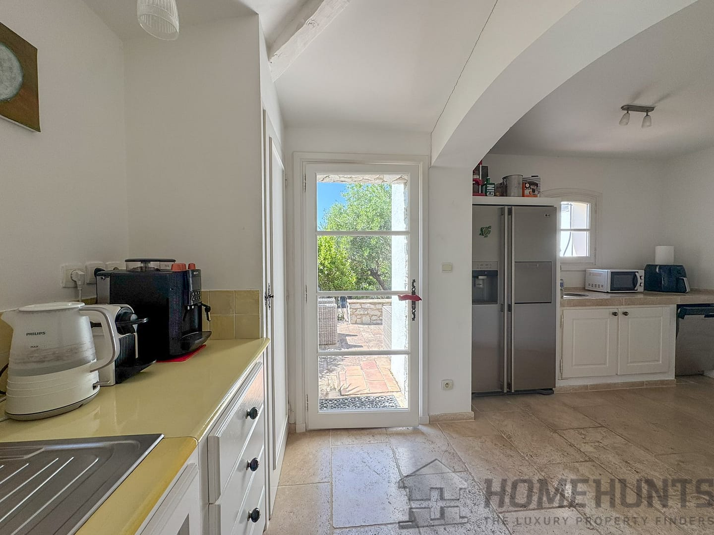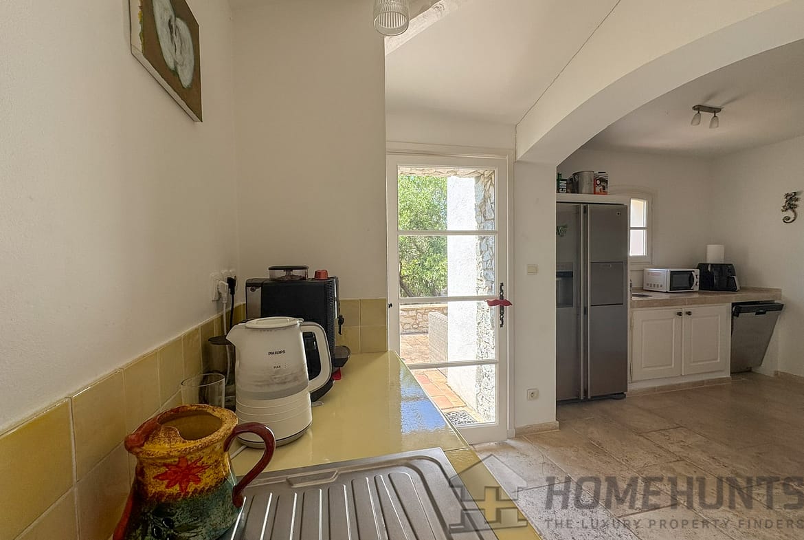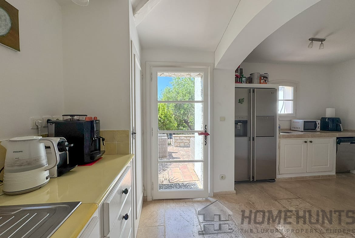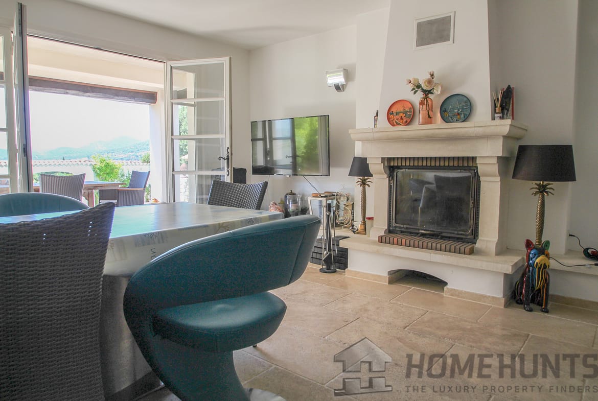 This bright, single-level villa offers generous living spaces: a spacious entrance hall, fully equipped kitchen, cosy living room with fireplace, dining area, two en-suite bedrooms, an office, and a refined master suite with private bathroom. All rooms open directly onto the terrace and pool area, creating seamless indoor-outdoor living.