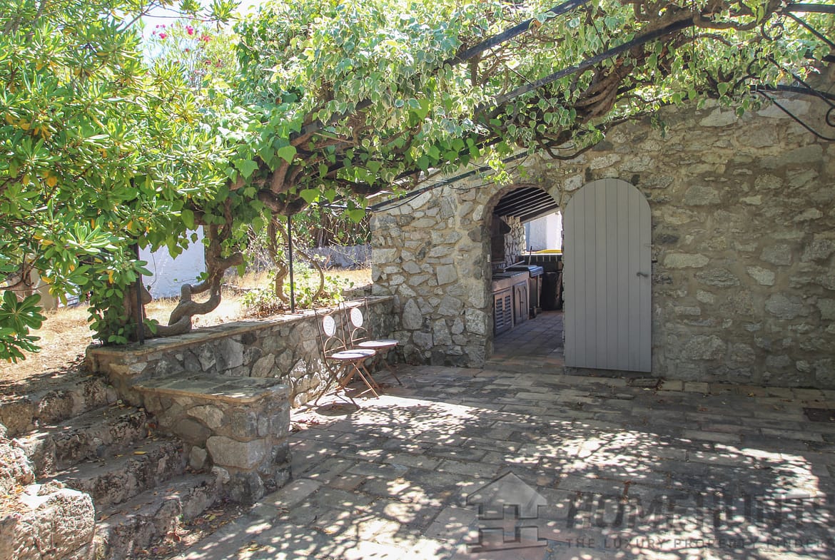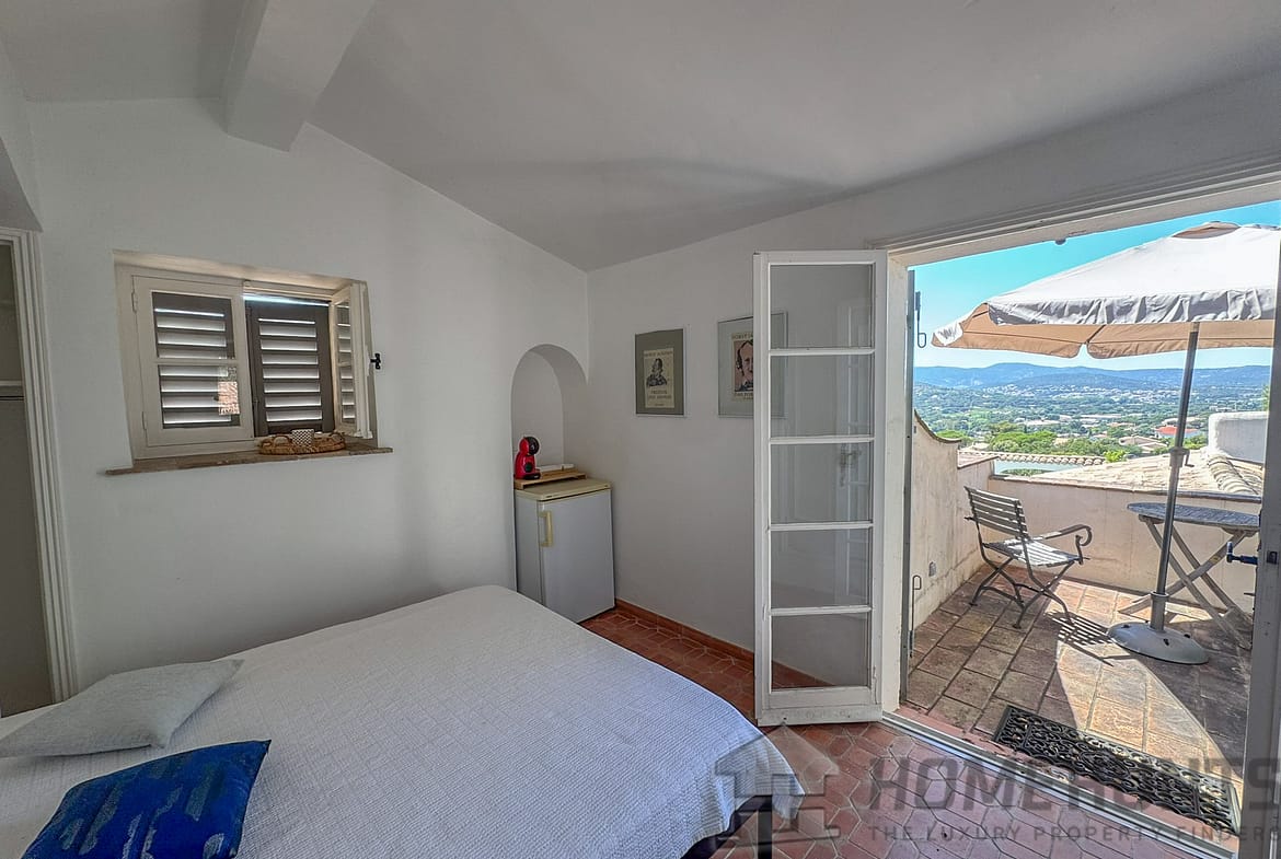 Upstairs, an independent studio includes a bedroom, shower room, built-in storage, and a private terrace with panoramic views.