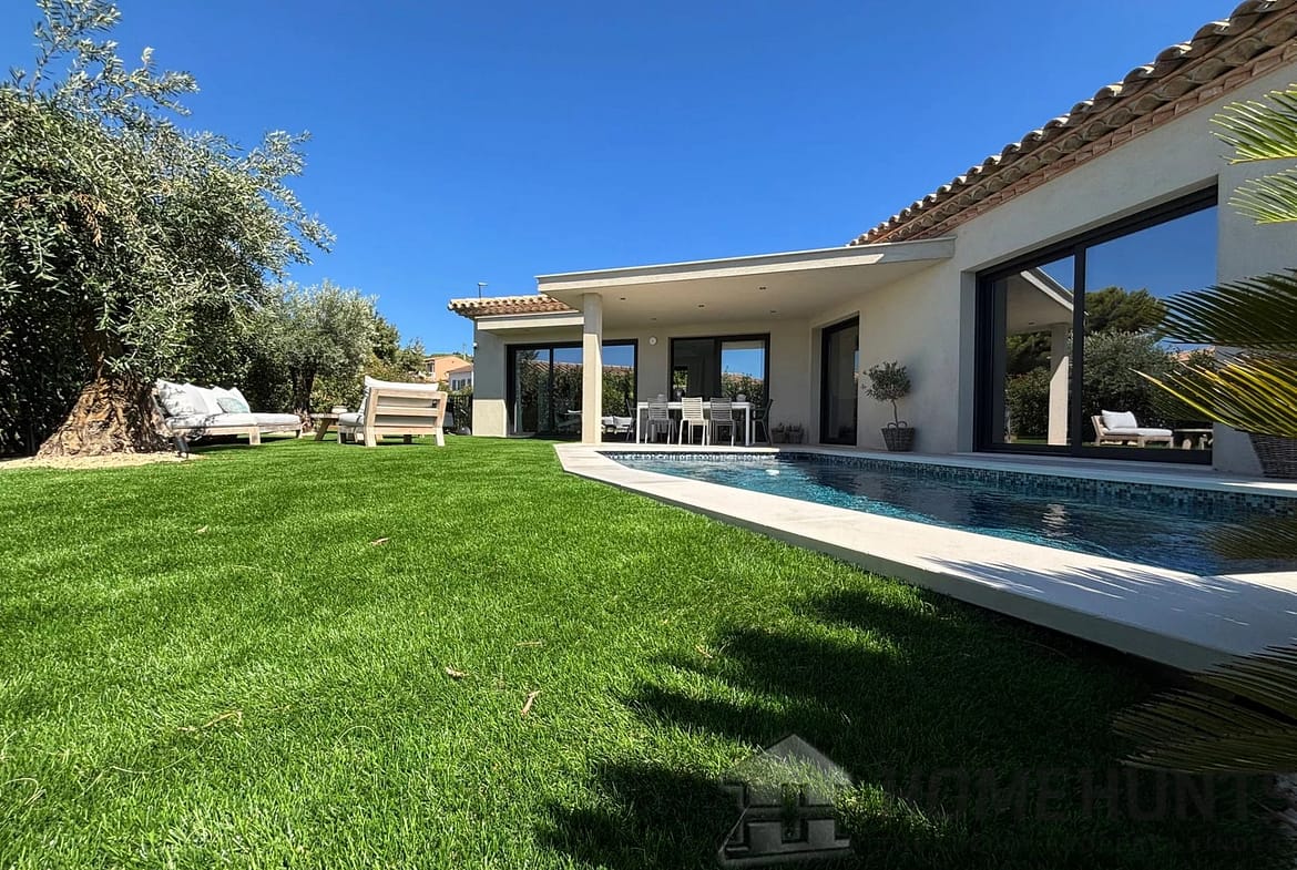 This very recent villa with top-of-the-range finishes requires virtually no maintenance and is ready to move in. The 170 m2 villa offers three spacious bedrooms with luxurious en suite bathrooms and a spacious dressing room. Ideal for entertaining family and friends. The laundry room, wine cellar and garage complete the picture. The fireplace and double glazing add to the comfort and elegance.