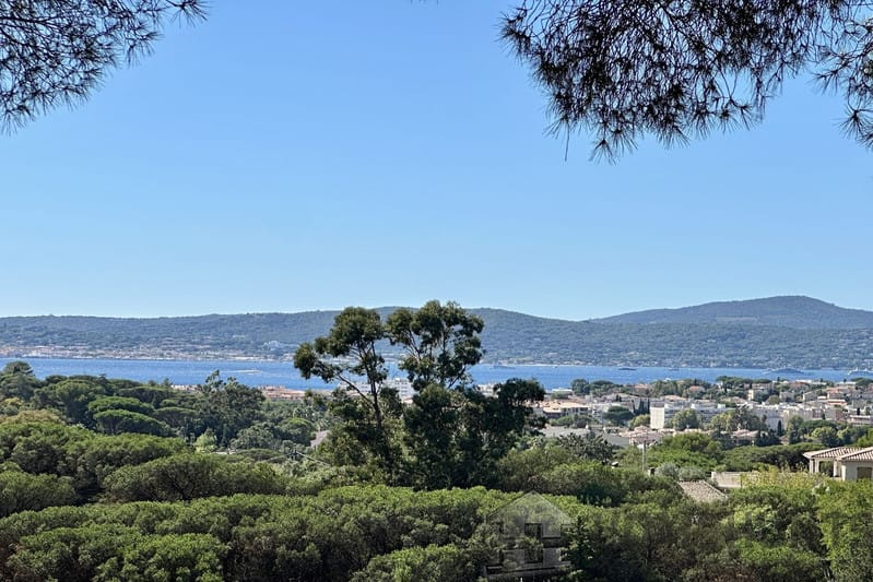 Sea view over the Gulf of Saint-Tropez, calm and green surroundings.