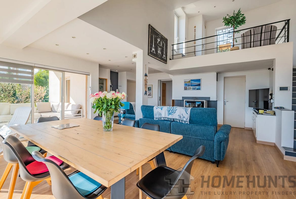 Ideally located in a sought-after residential area of Sainte-Maxime, this elegant contemporary villa offers a spectacular panoramic view over the Mediterranean and the Gulf of Saint-Tropez. Combining refined architecture, modern comfort, and high-end finishes, it embodies the essence of luxury living on the French Riviera.