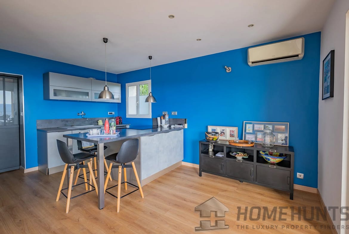 Spread over two levels and served by a lift, the villa offers around [insert surface if available] m2 of bright interiors, opening beautifully onto sun-drenched terraces and the sea.