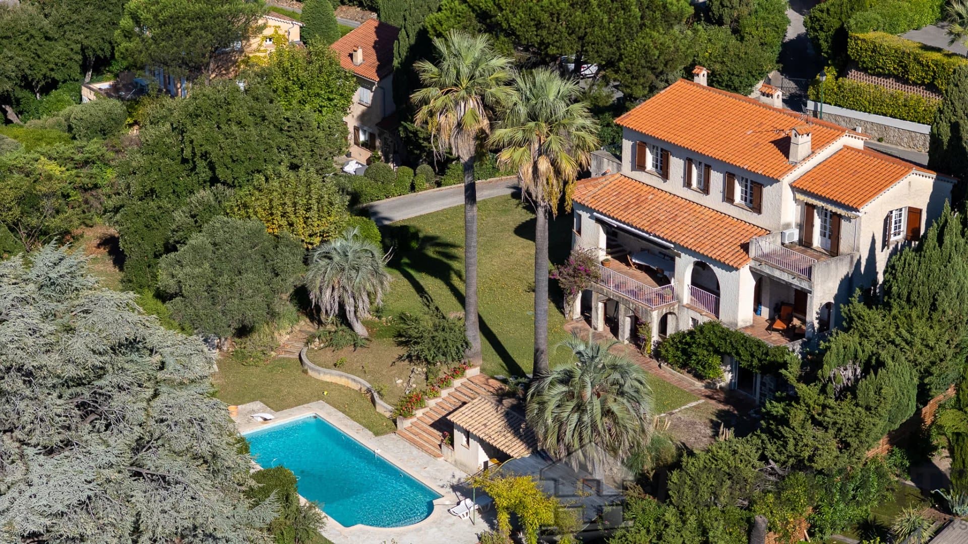 The outdoor spaces invite relaxation and conviviality: a beautiful swimming pool, a pool house, and a Mediterranean garden where palm trees and local species intermingle.