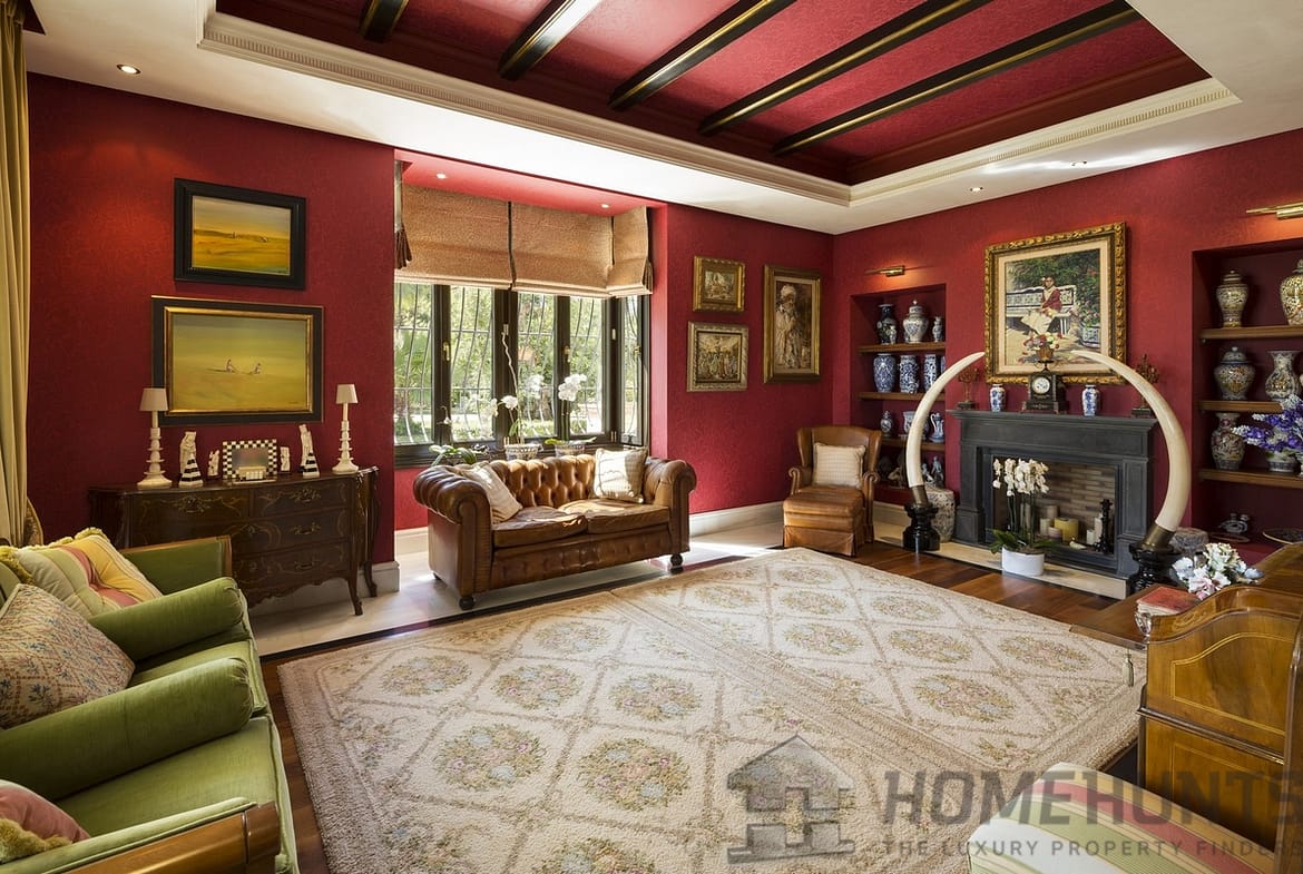 On the main floor you’ll find a separate dining salon, a great sized living room, additional office and spacious kitchen. The atrium with its charming water display is accessed on this floor and the living room leads out to the lush garden with plenty of privacy and again beautiful panoramic views.