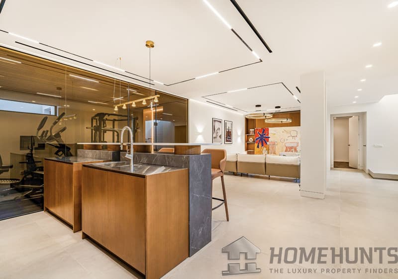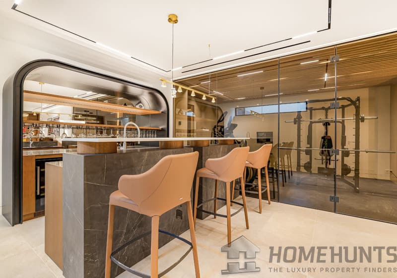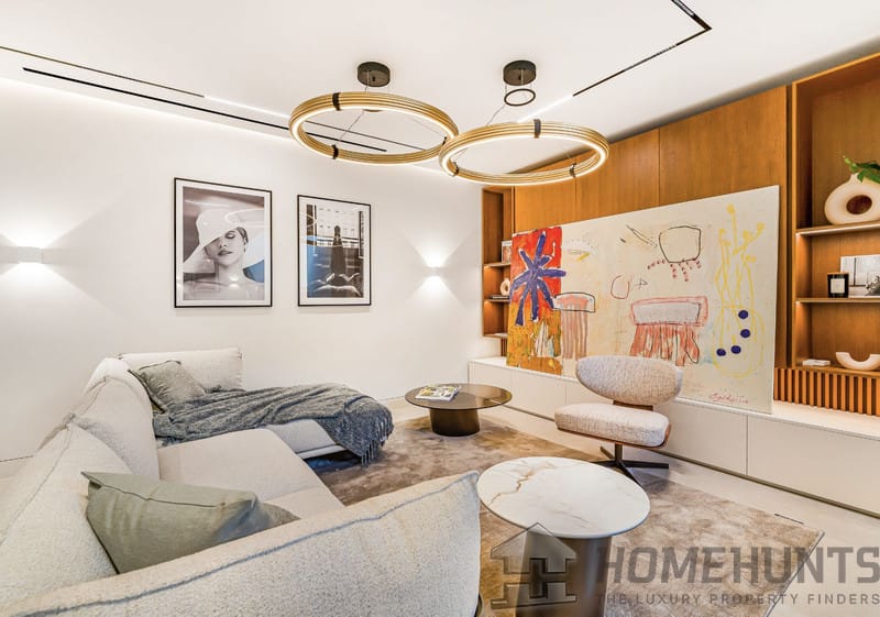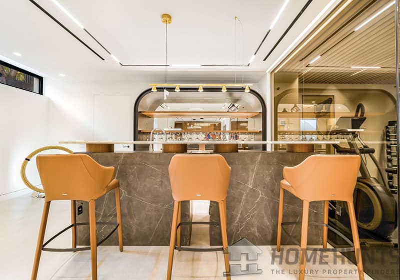 The basement is a luxurious sanctuary equipped with a Finnish sauna, gym, a large additional bedroom, storage room, home cinema, guest toilet, TV area, and a uniquely designed bar. Furniture and carpets supplied by prestigious Italian brands such as “Bonaldo”, “Ditre”, and “Talenti” enhance the villa’s elegance and comfort.