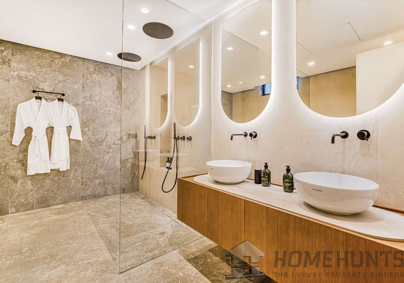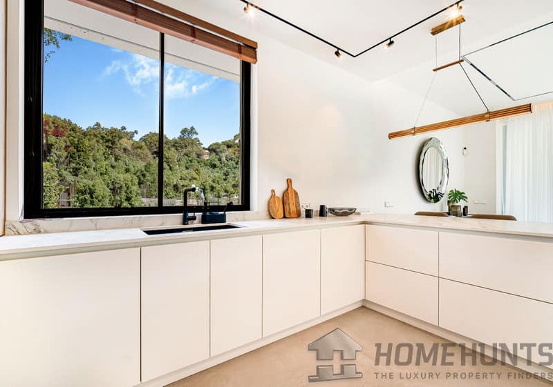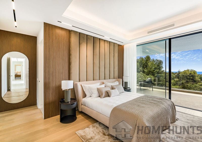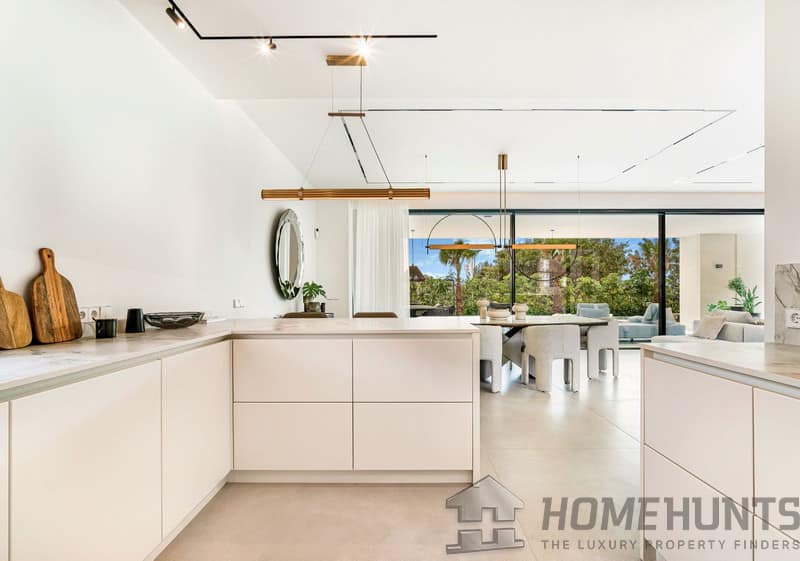 With a total built area of 813 m2 on a plot of 1,050 m2, this villa has been meticulously designed with top-quality materials and large windows that harmoniously connect the interiors with the natural surroundings. Majestic pine trees on the property create a unique and tranquil Mediterranean atmosphere.