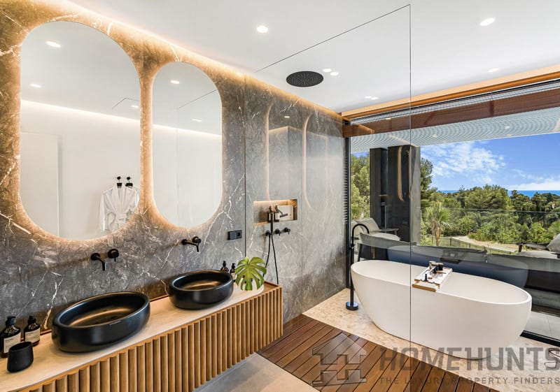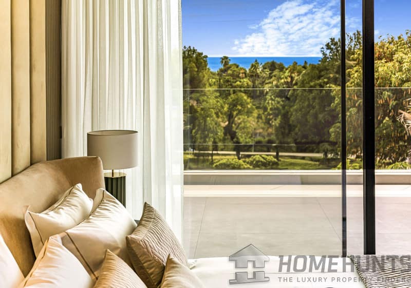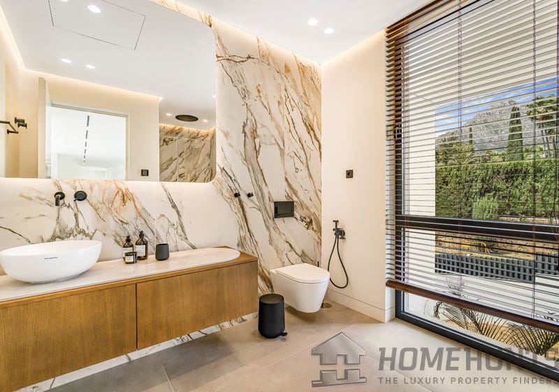 Strategically positioned on an elevated site facing south, the villa boasts spectacular views of the Mediterranean Sea and the iconic La Concha mountain, filling the interiors with natural light throughout the day.
