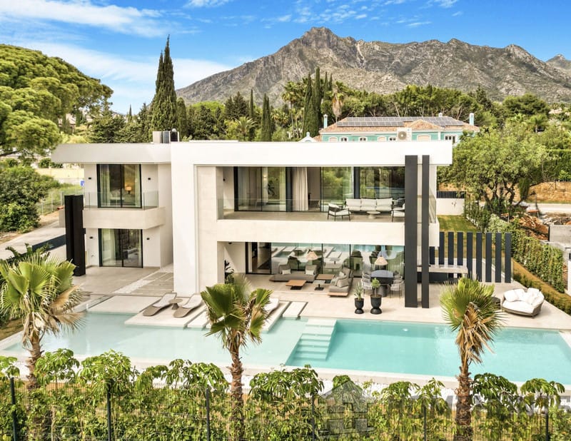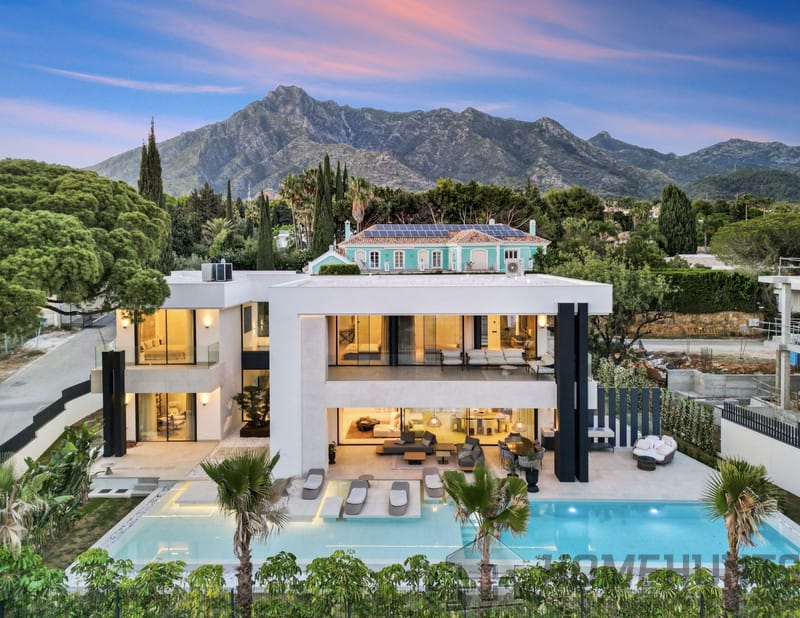 Welcome to this stunning brand new 5-bedroom luxury villa in the heart of Marbella’s coveted Golden Mile, specifically in Rocío de Nagueles. This exclusive property seamlessly blends elegant design with modern amenities, offering unparalleled luxury living in a prime location.