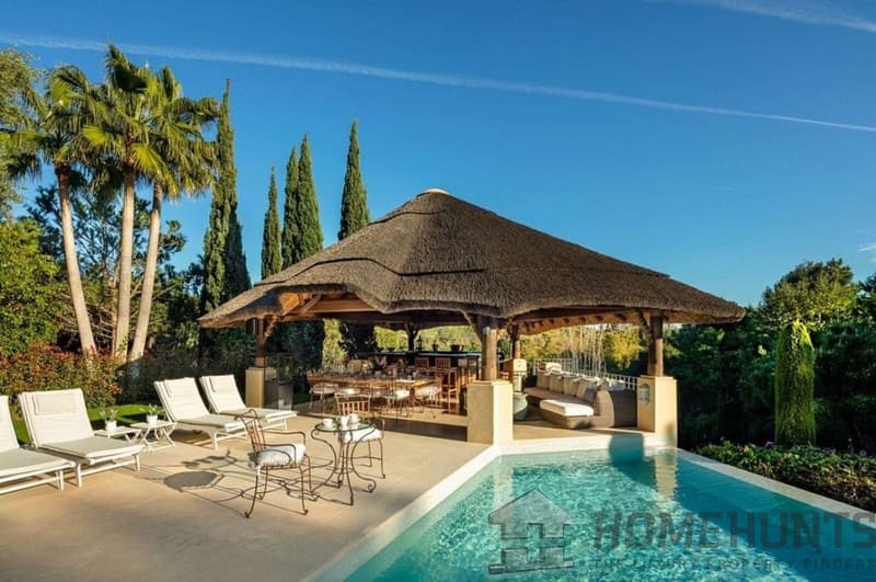Outside, meticulously manicured gardens surround a large private swimming pool, ideal for enjoying the Costa del Sol climate. The property also includes a garage, storage room and all the amenities necessary for high-end living.