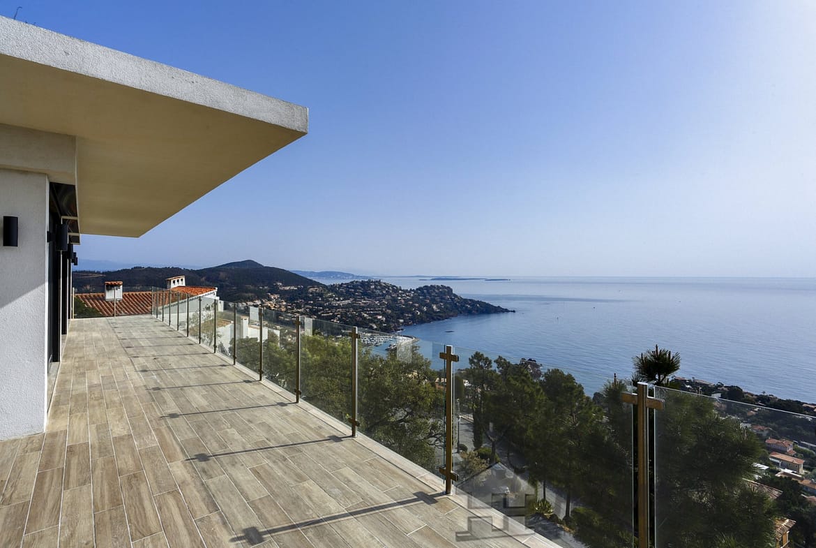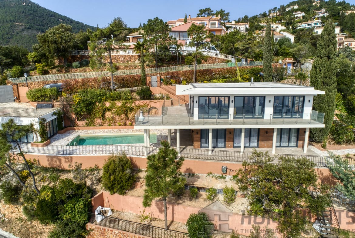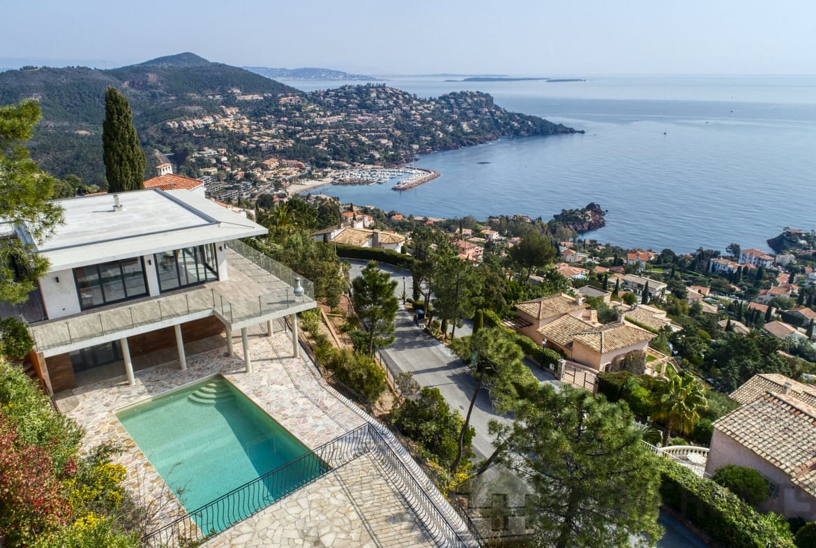 Beautiful contemporary villa located in a gated area on the hill of Trayas, enjoying a breathtaking elevated panoramic sea view.