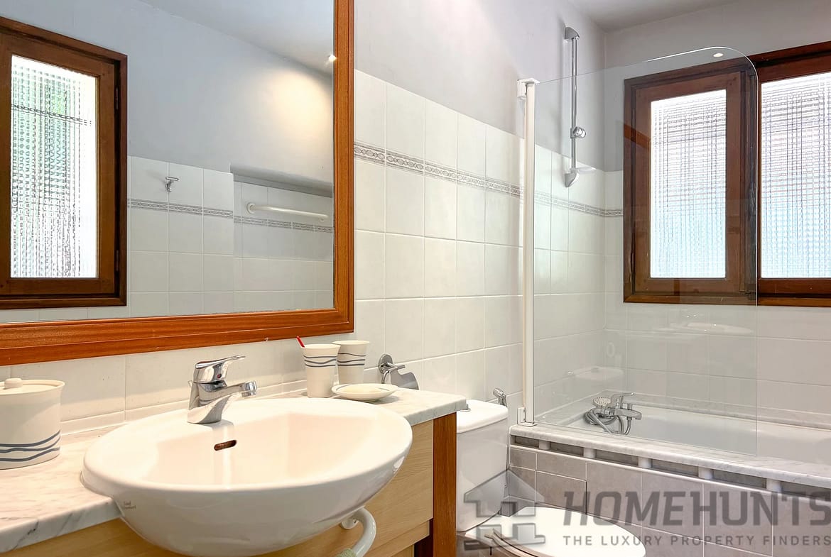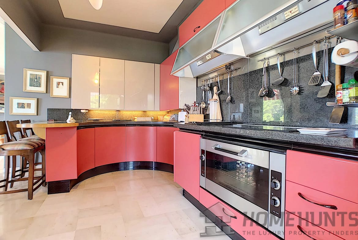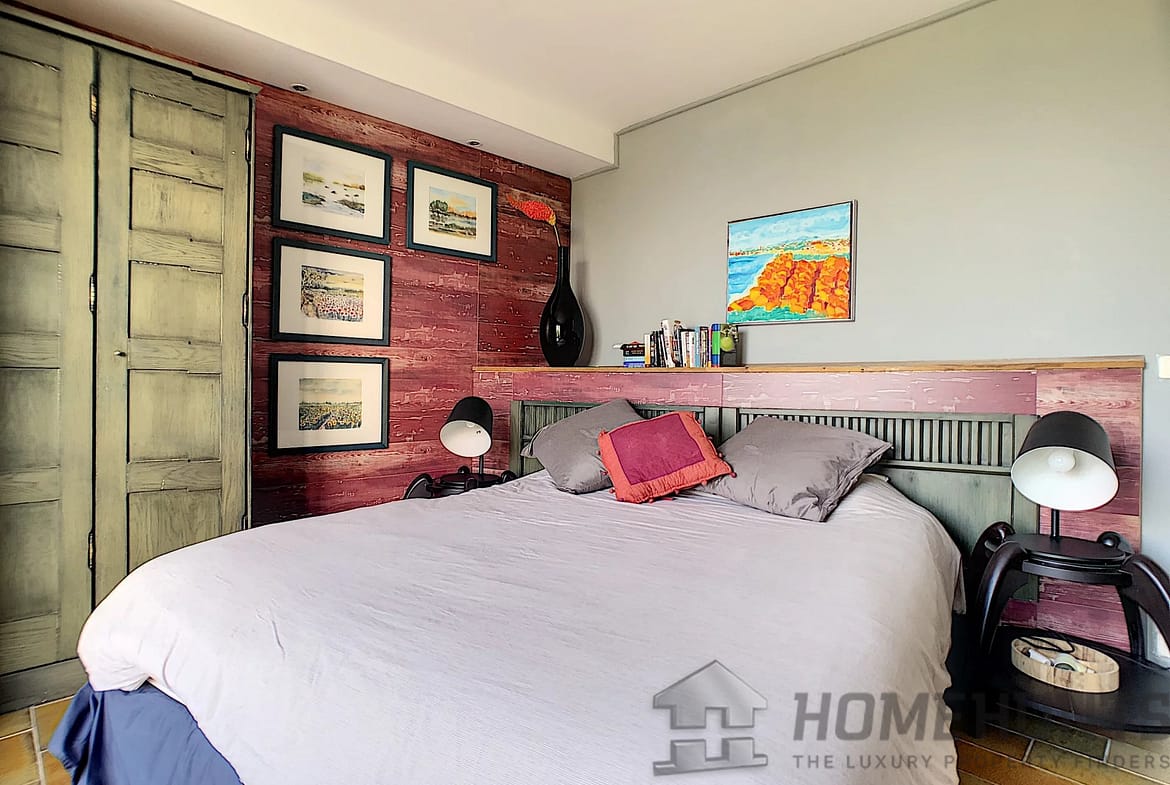 Accommodation of 200 m2, the villa comprises on pool level a double living area with a semi-open plan kitchen, all opening onto a covered terrace offering a beautiful sea view. A master bedroom with salon and bathroom is located on the same level and enjoys the view as well as direct access to the pool.