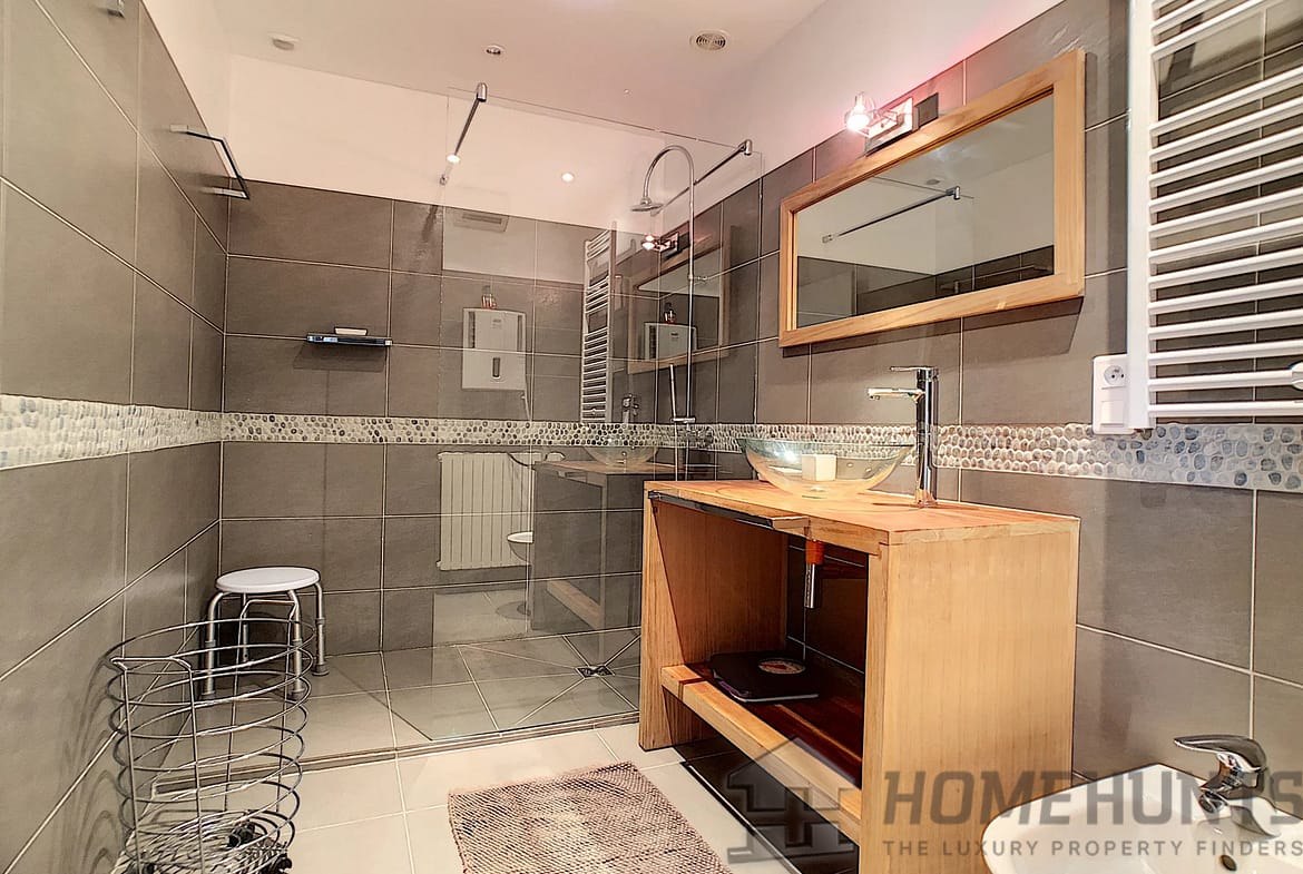 An apartment with independent access is located on the same level and comprises a living room with kitchenette, a bedroom and a shower room.