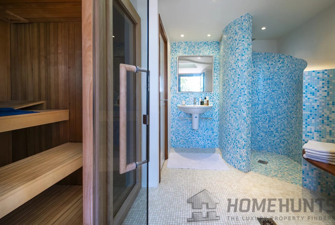 The property has an elevator, a spacious three-car garage and a 3-bedroom guest apartment with living-area and equipped kitchen.