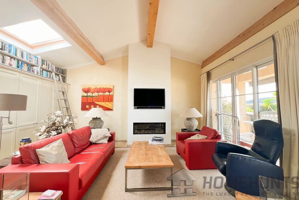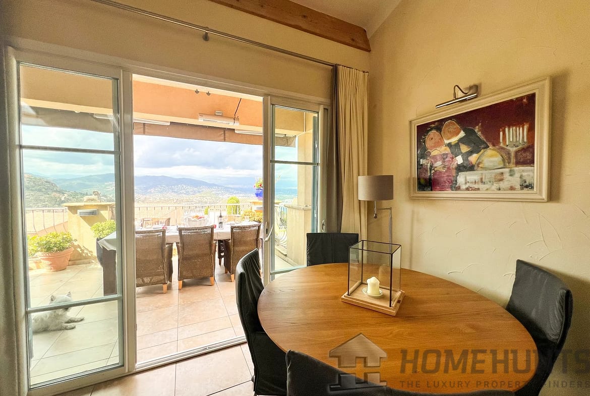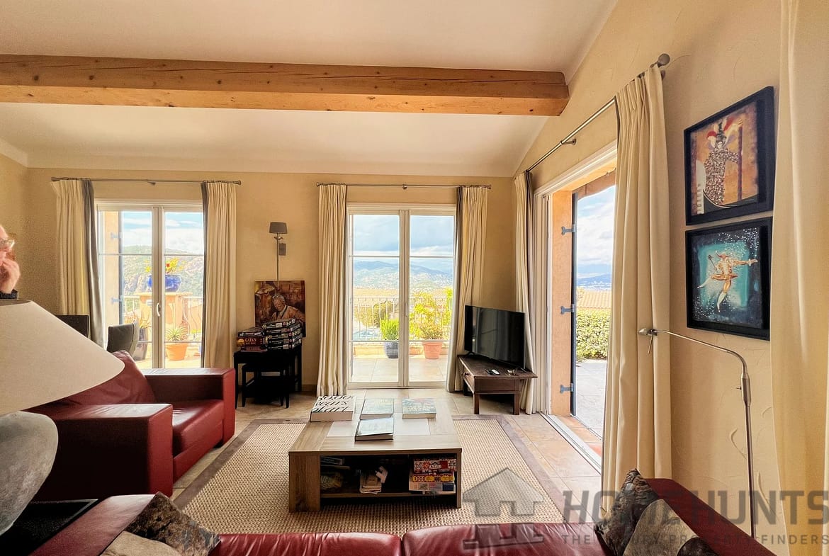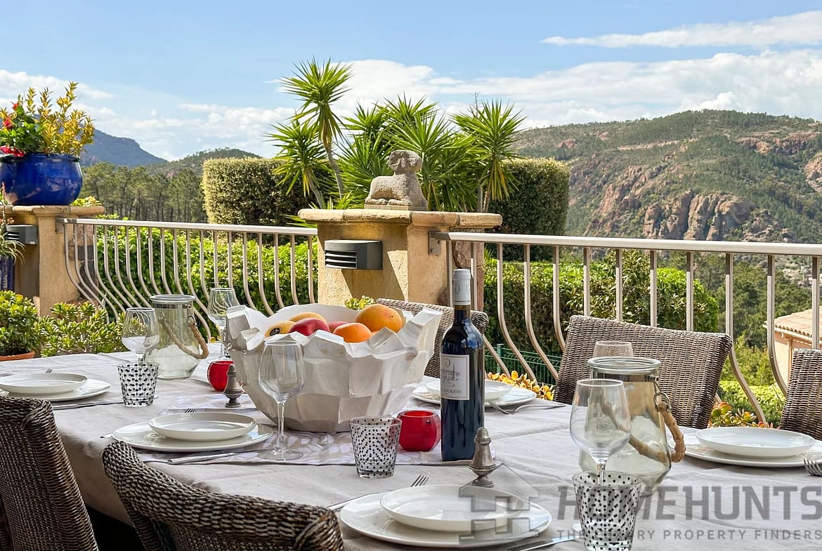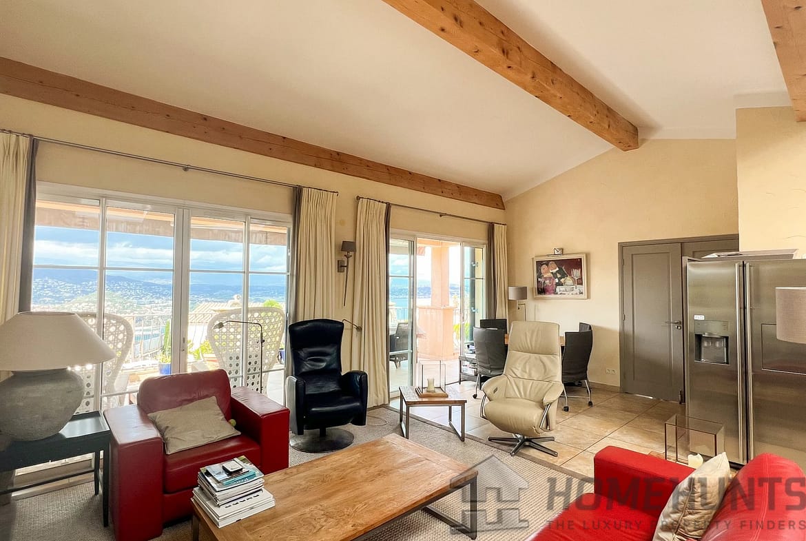 A few minutes from the village of Theoule-sur-Mer, enjoying a view of the bay of Cannes and the Esterel, charming 221 m2 family sized villa with superb swimming pool and open views.