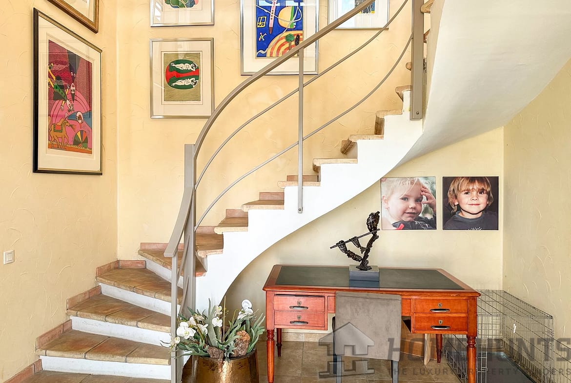 Upstairs, the living space consists of 2 living rooms with kitchen, one with a fireplace, all opening onto beautiful terraces offering a clear view.