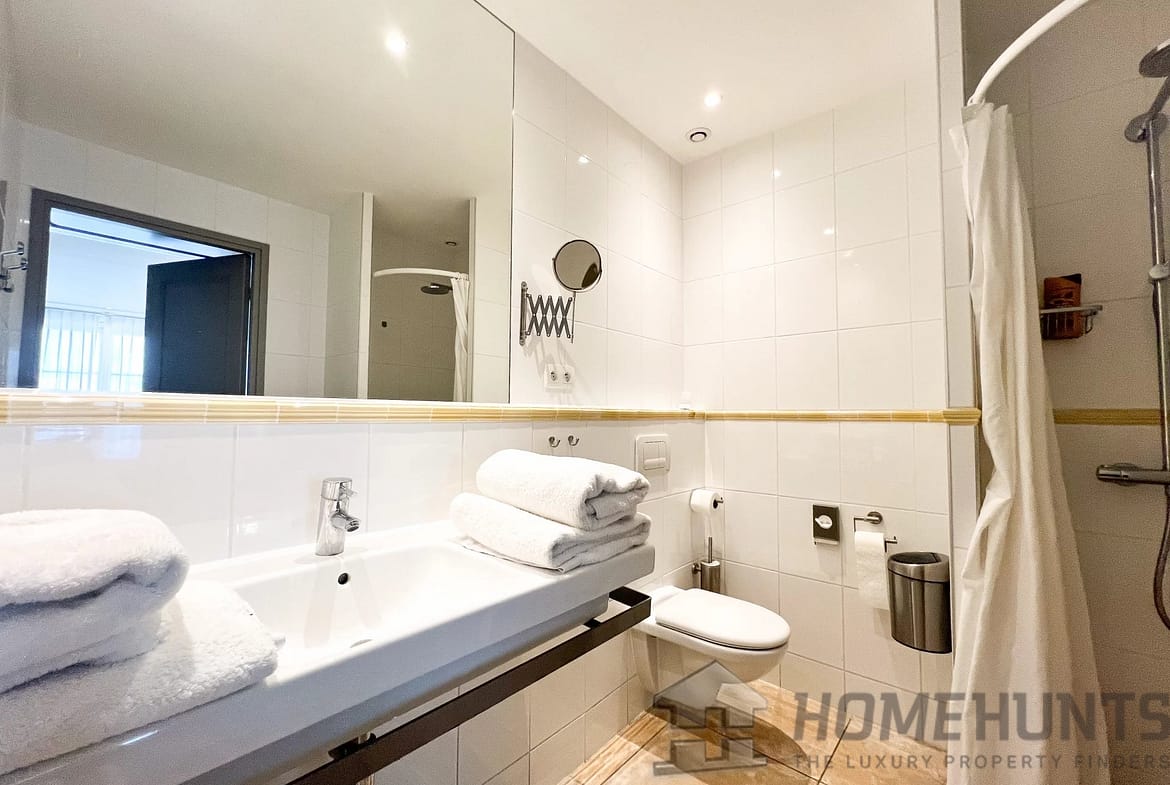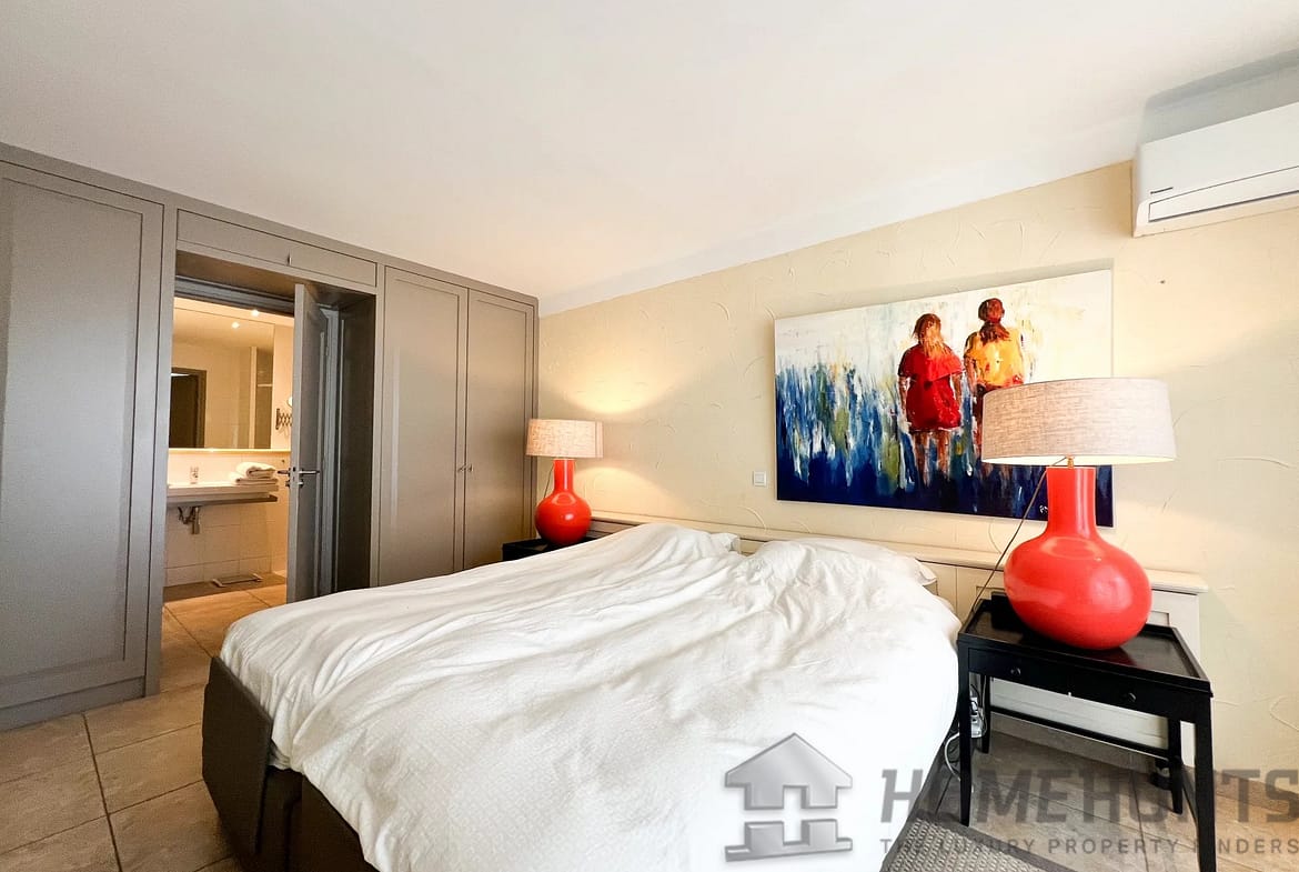 On ground floor, the villa opens onto a spacious entrance with cupboards and laundry room, leading to the sleeping area made up of 4 bedrooms each with its own shower room, and all opening onto a first terrace area with swimming pool.