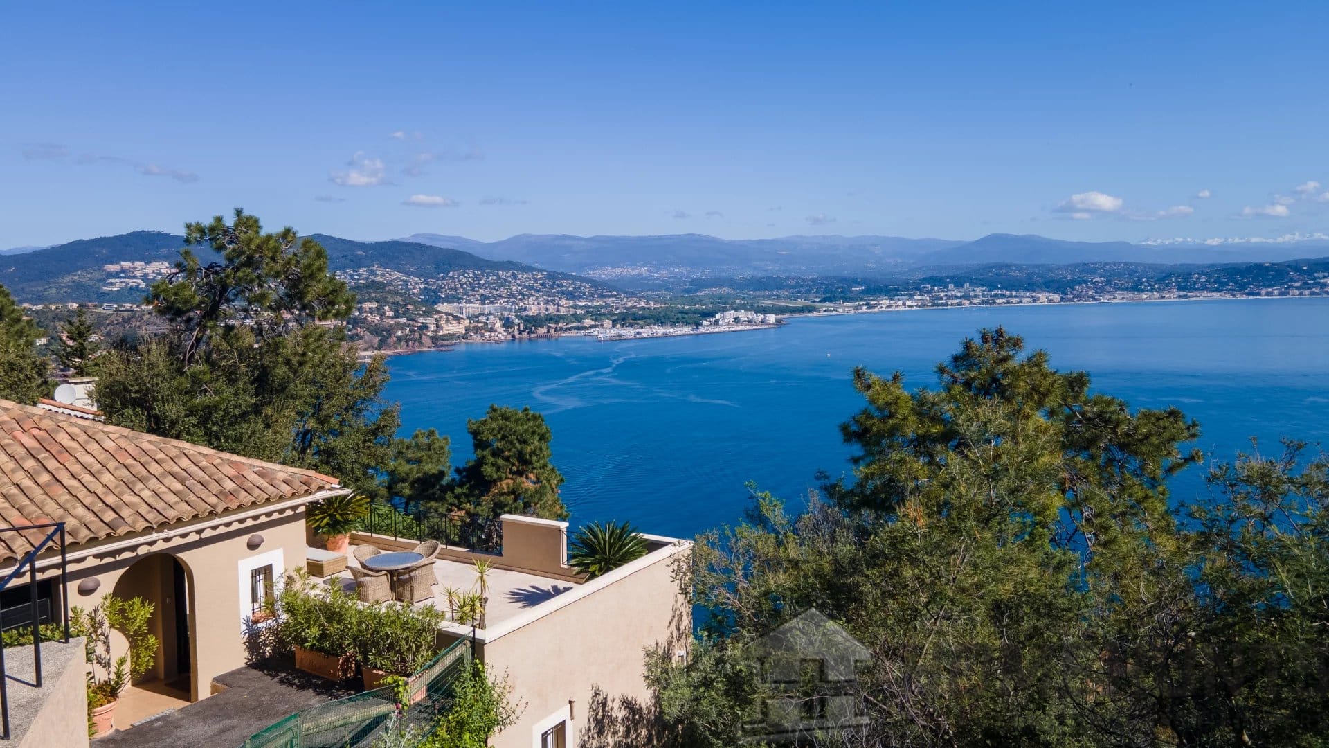 Nestled in a prime, elevated position in Theoule-sur-Mer, just minutes from the village, beaches, restaurants, and shops, this refined villa captures the essence of Riviera living with its panoramic views over the Bay of Cannes and the surrounding mountains.