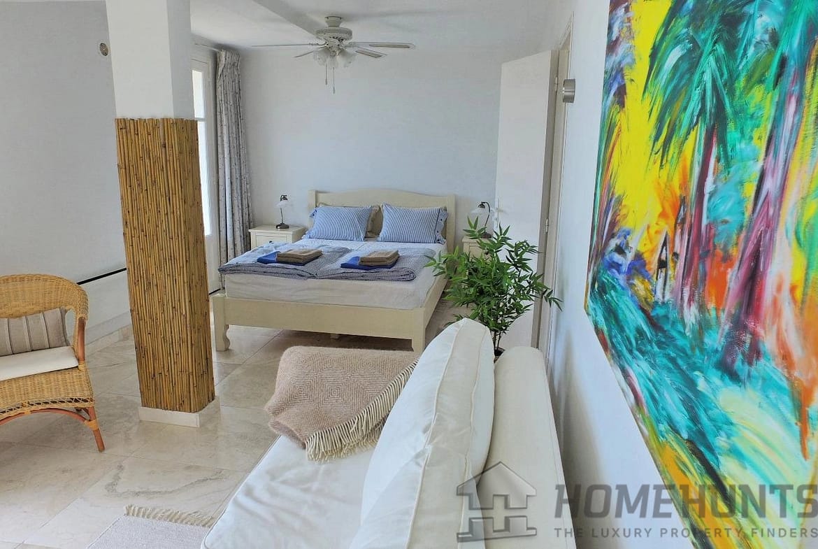 The interior features a spacious double living room, a fully equipped kitchen, a dining area opening onto the terrace, and a master bedroom with en-suite shower room and WC.
