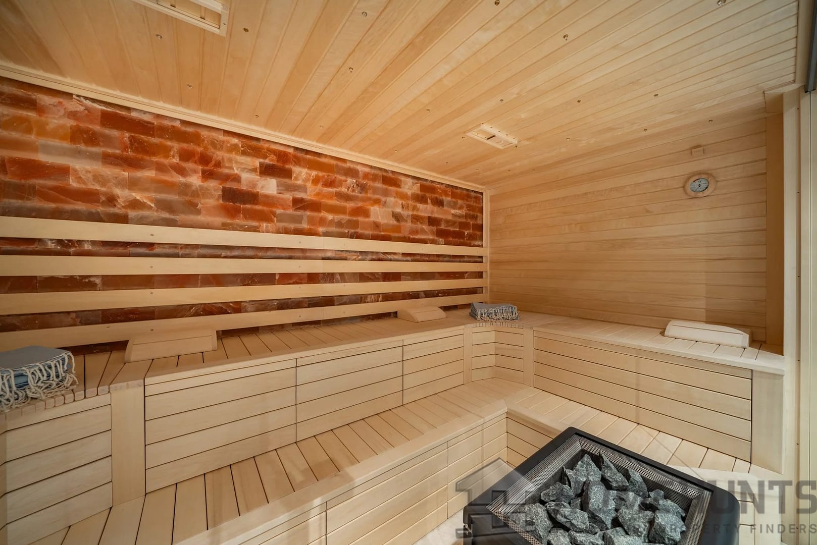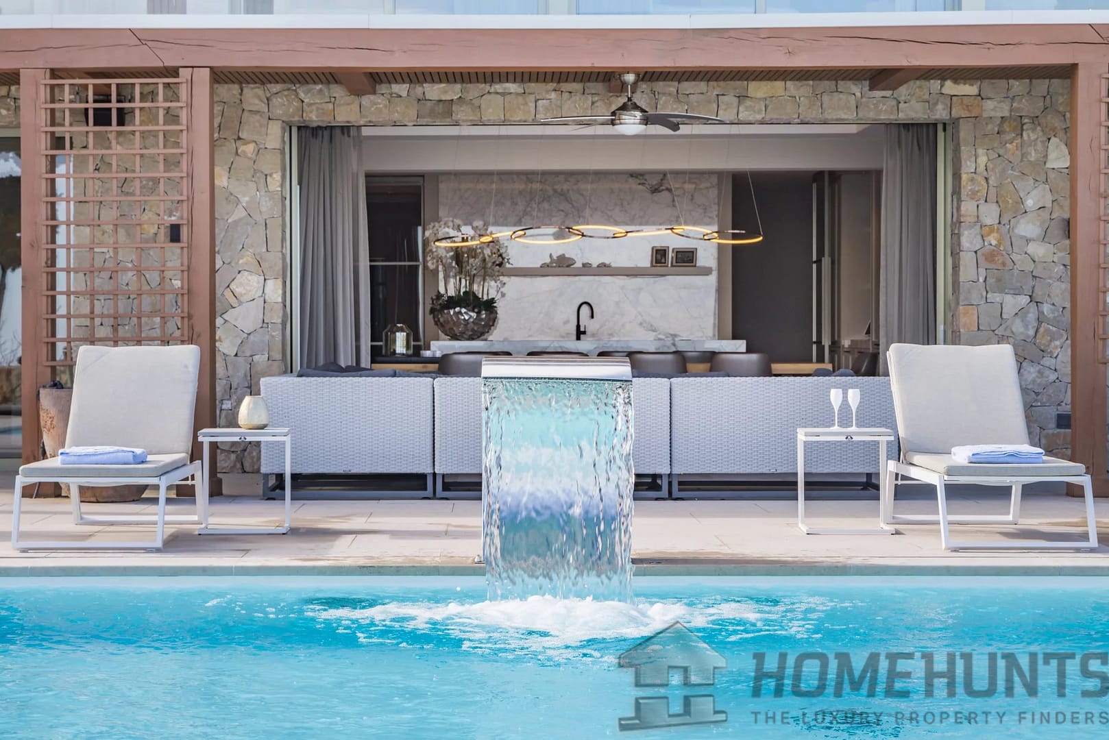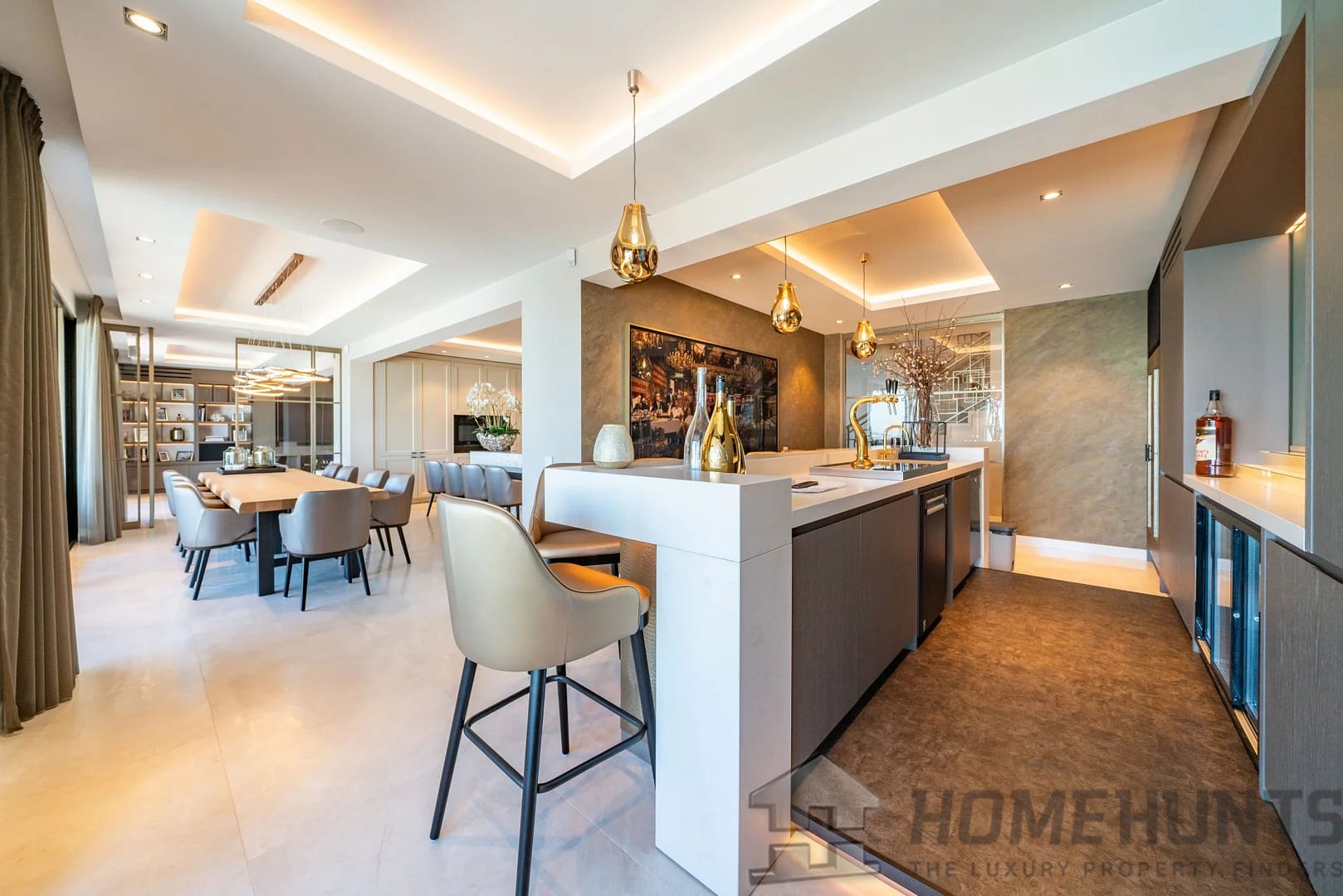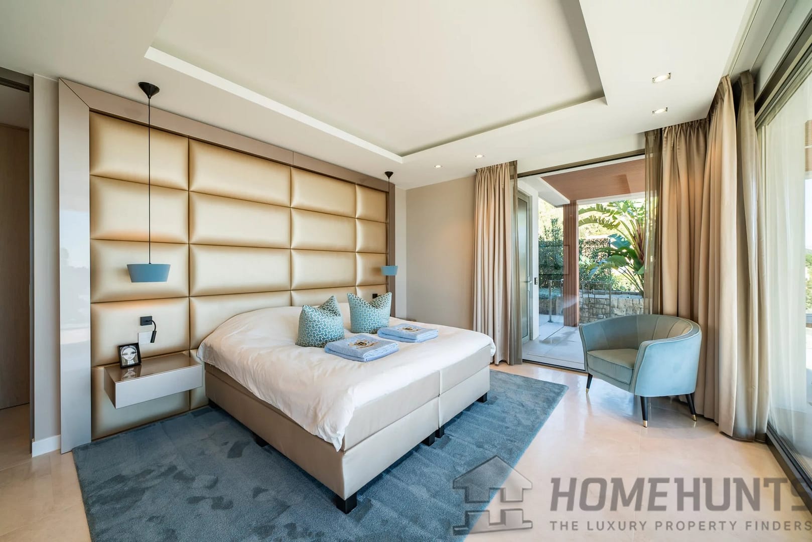 The property includes a total of 7 en-suite bedrooms, each with its own bathroom and/or shower, dressing room, a reception room and a dining room, a large dining kitchen and second dining room, a bar area and wine cellar. At the swimming pool level, a relaxation area with gym, sauna and media lounge, a large terrace surrounds the swimming pool.
