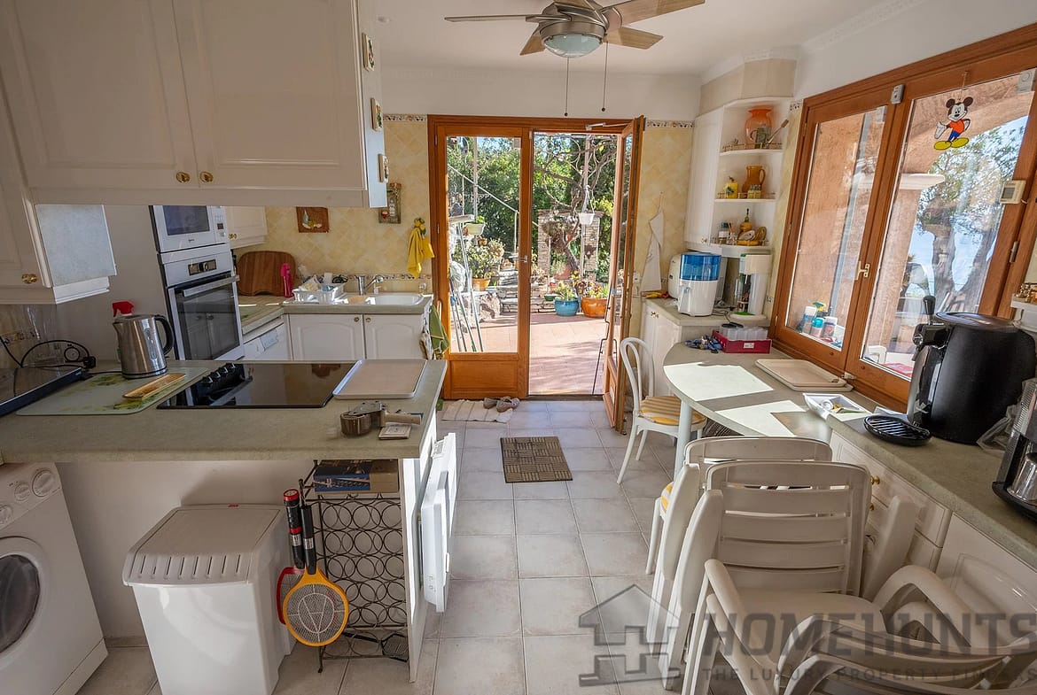 With around 150 m2 of living space, the villa unfolds over two levels. The garden floor features a bright and spacious living room opening onto the terrace and pool area, creating the perfect setting for relaxing or entertaining while enjoying the coastal panorama. A separate kitchen with a charming breakfast corner adds to the home’s inviting and functional layout.