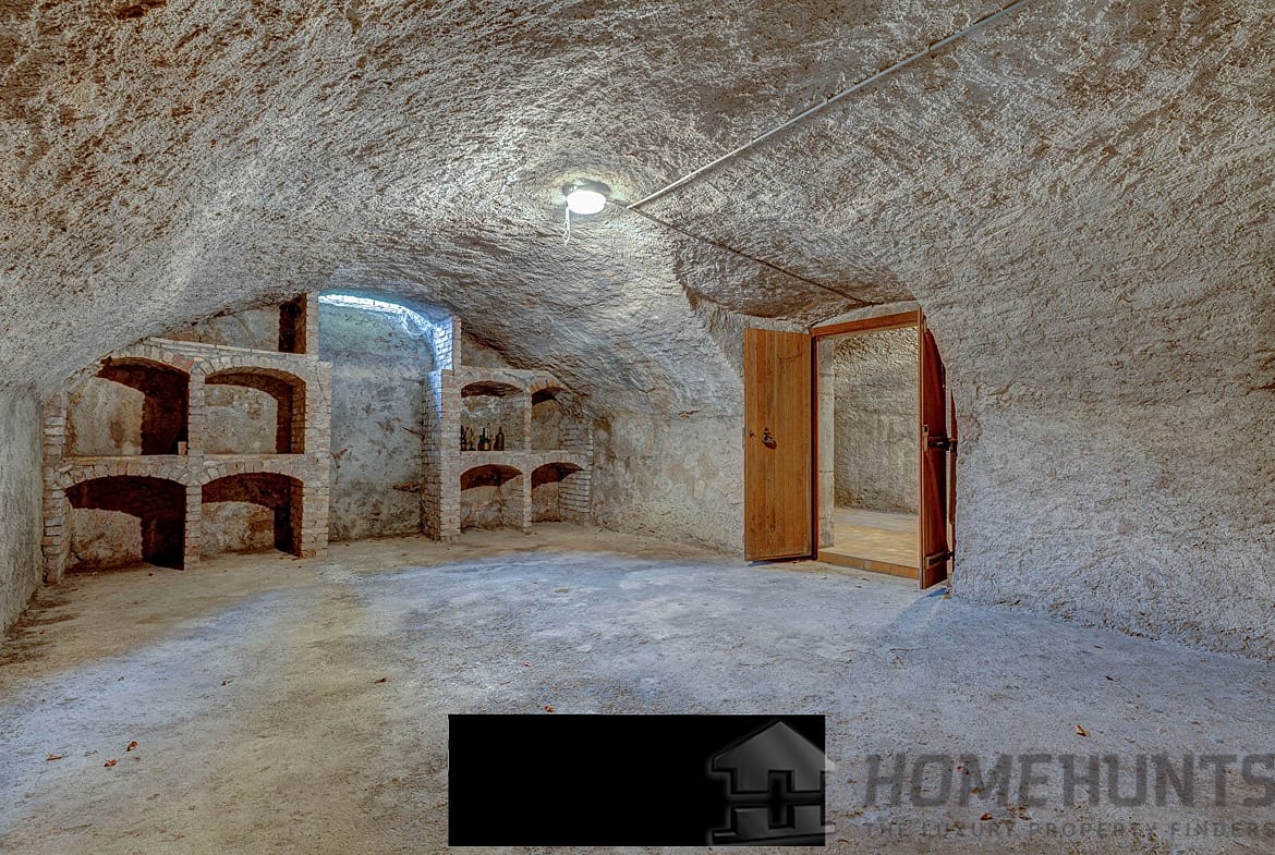 The basement has two wine cellars, a vaulted cellar, a storage room, and a technical room with a workshop. An elevator provides access to the upper floors and the basement.