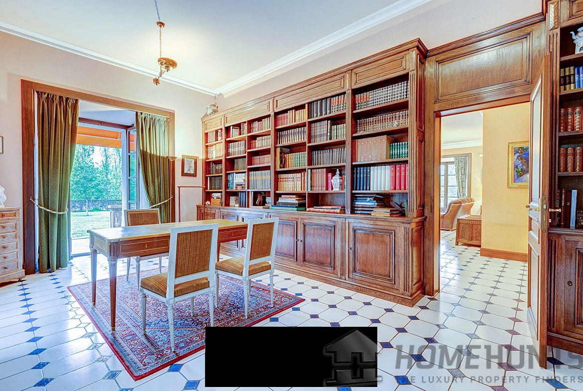 From the entrance, the magic happens. A majestic hall, with high molded ceilings, distributes an office with a wooded library as well as the living spaces. The living areas consist of a living room with a Louis XV-style marble fireplace, a cosy dining room with a French ceiling, and a kitchen with a dining area featuring a fireplace. All of these rooms offer direct access to a spacious terrace. A linen room completes this level.
